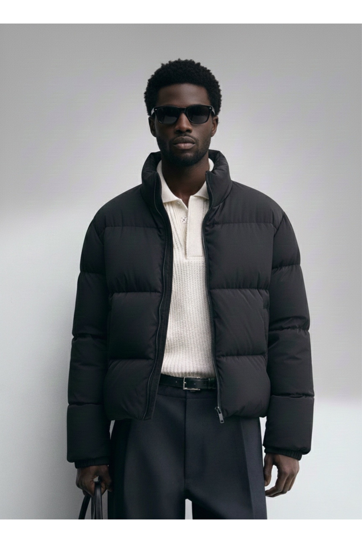 کاپشن زمستانی مردانه مشکی، ضخیم، آستردار، ضد باد، پفی