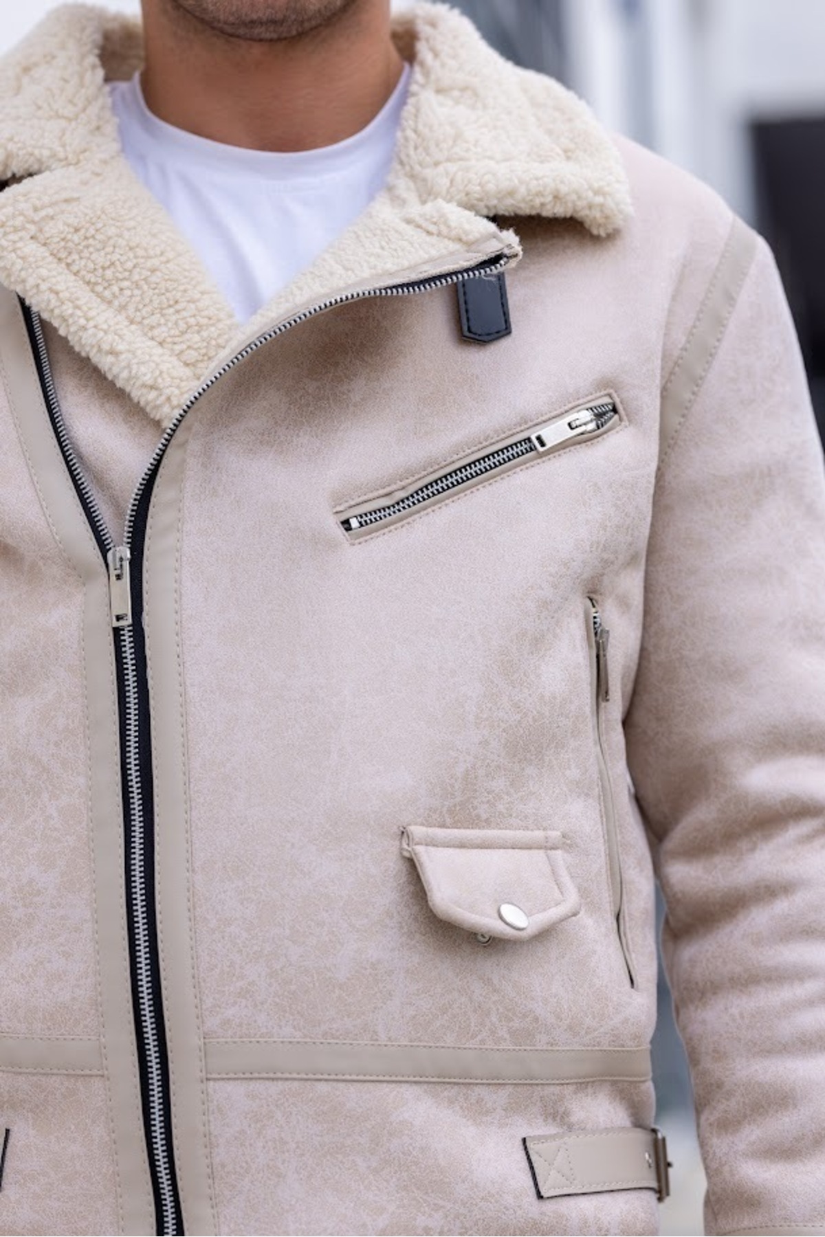 کاپشن چرم ناپا مردانه با آستر تمام خز به سبک شمالی
