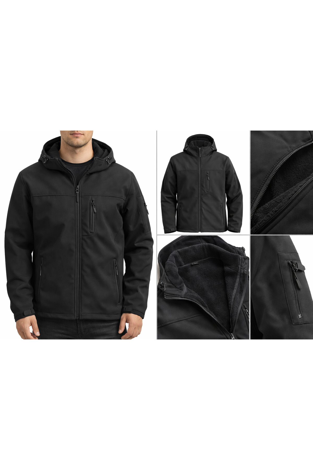 کاپشن مردانه کلاهدار نرم با آستر پشمی، سایز بزرگ (6XL-7XL-8XL)