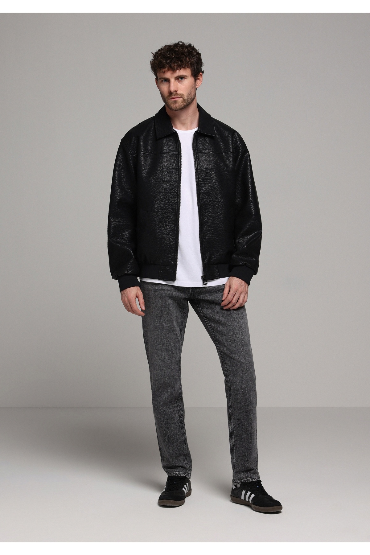 کاپشن مشکی مردانه سایز معمولی (PU)