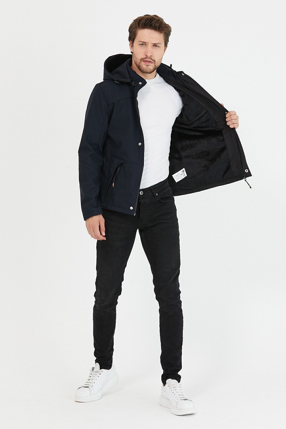 کاپشن مردانه کلاه دار سرمه ای ضد آب و بادگیر Softshell