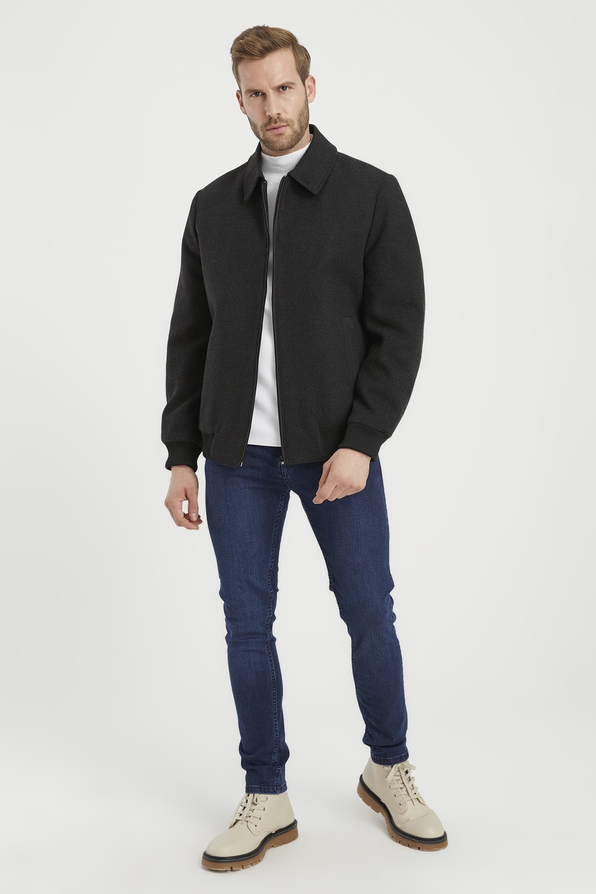 کاپشن خاکستری آستین بلند پشمی | | نمایندگی