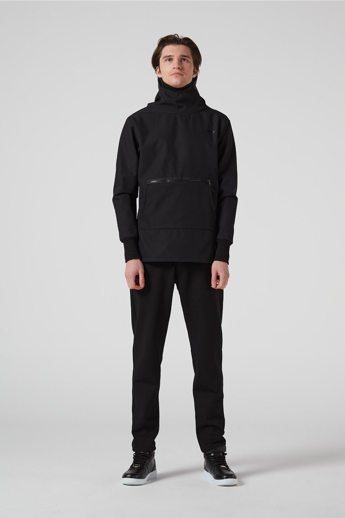 تاپ مردانه یقه اسکی مشکی، پشمی برس خورده و کلاه دار.