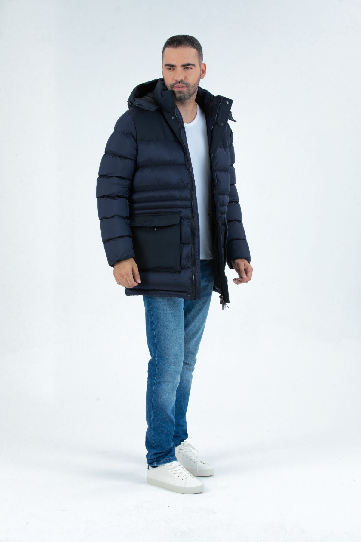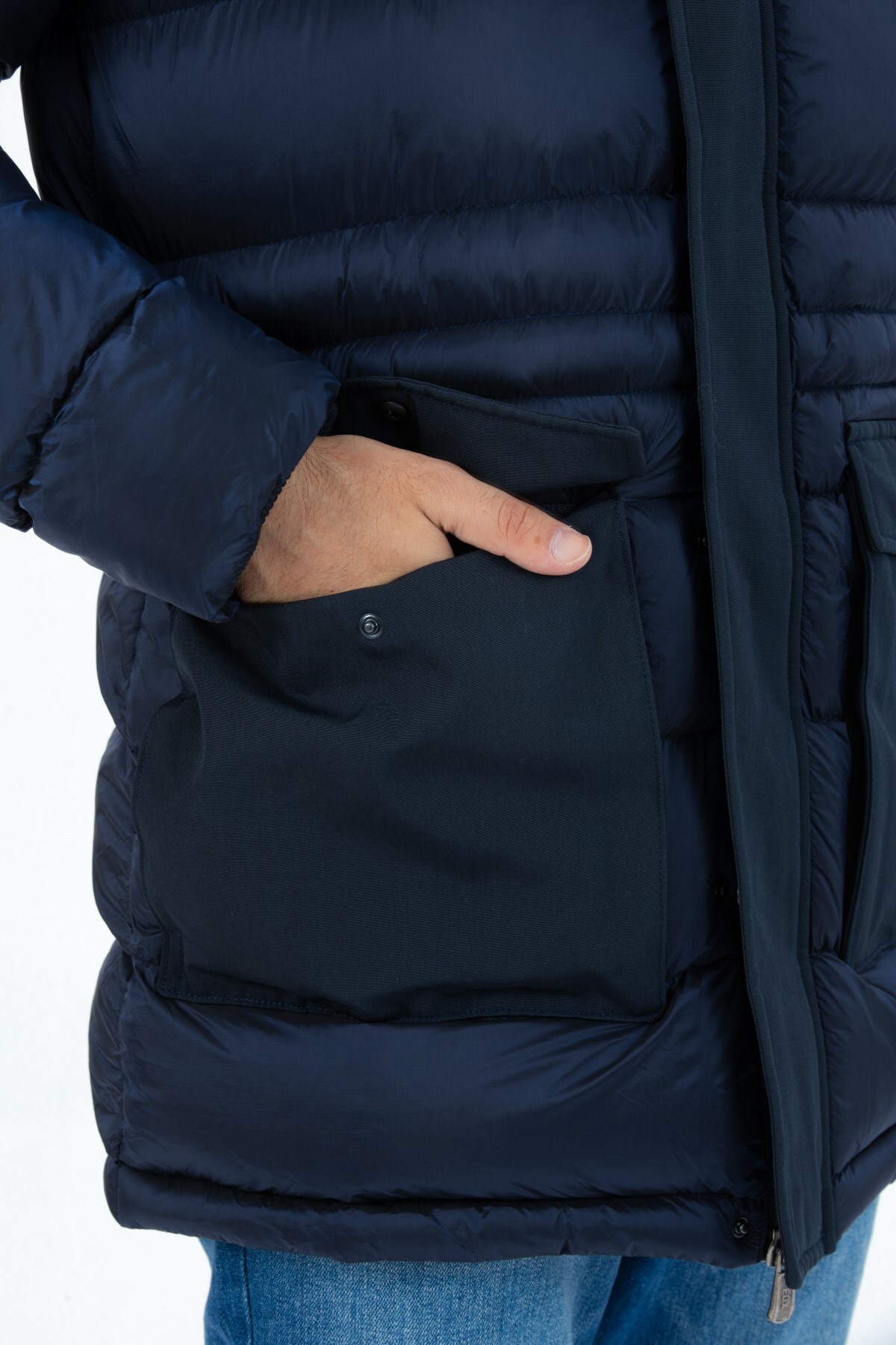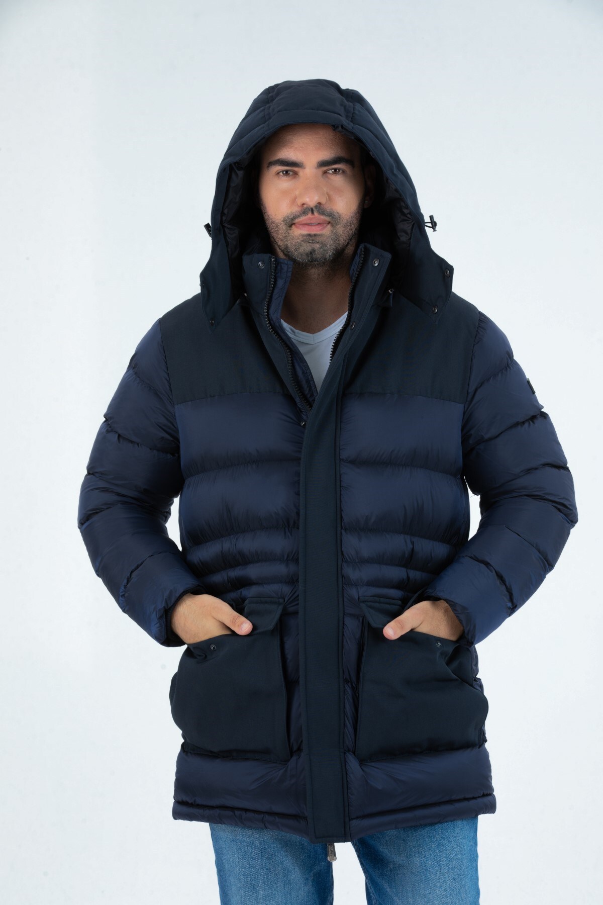 کاپشن پفی مردانه بلند، بادگیر و ضد آب با کلاه جداشونده ۹۷۱۲