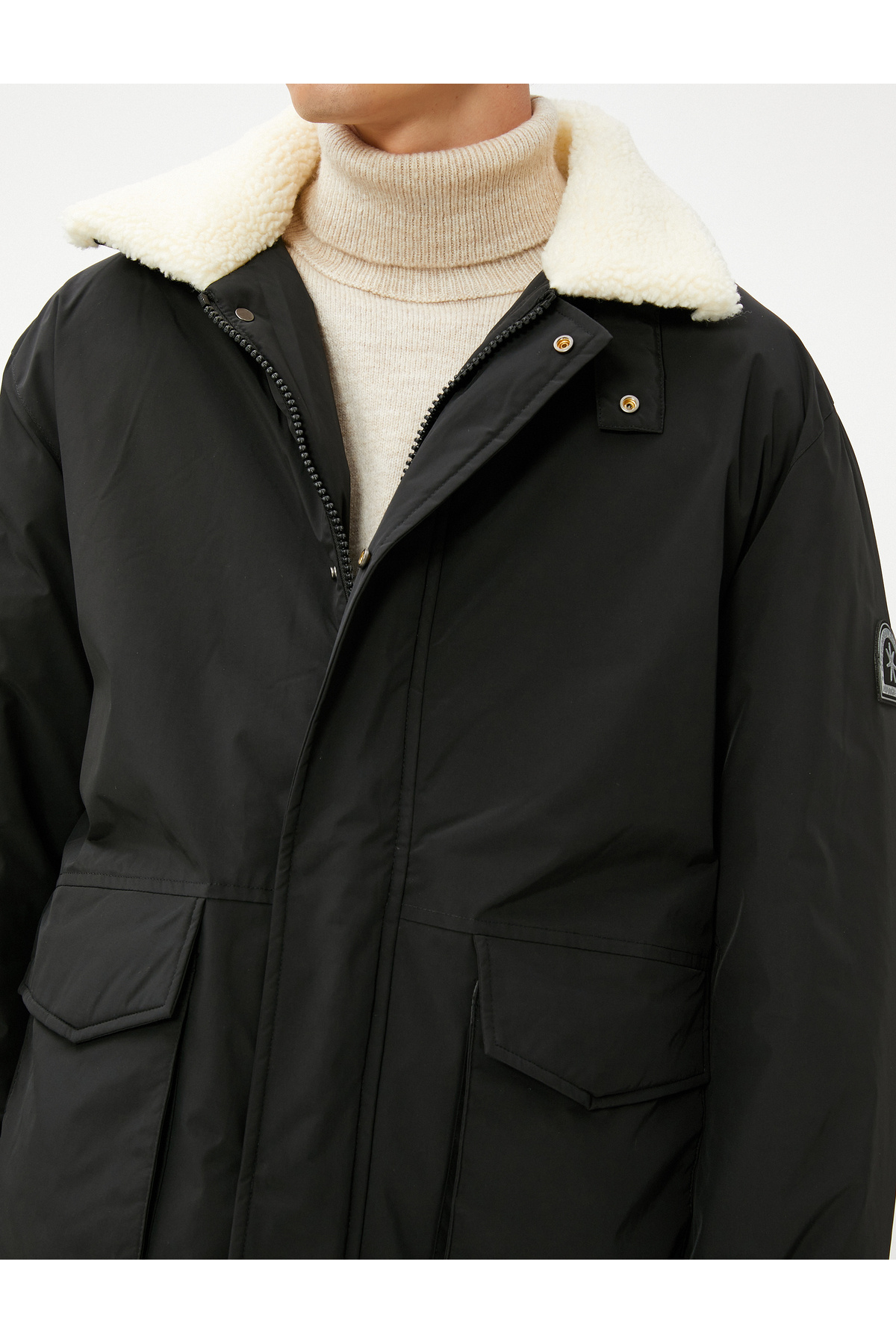 کاپشن کلاهدار با یقهی مخمل، جیب و زیپ