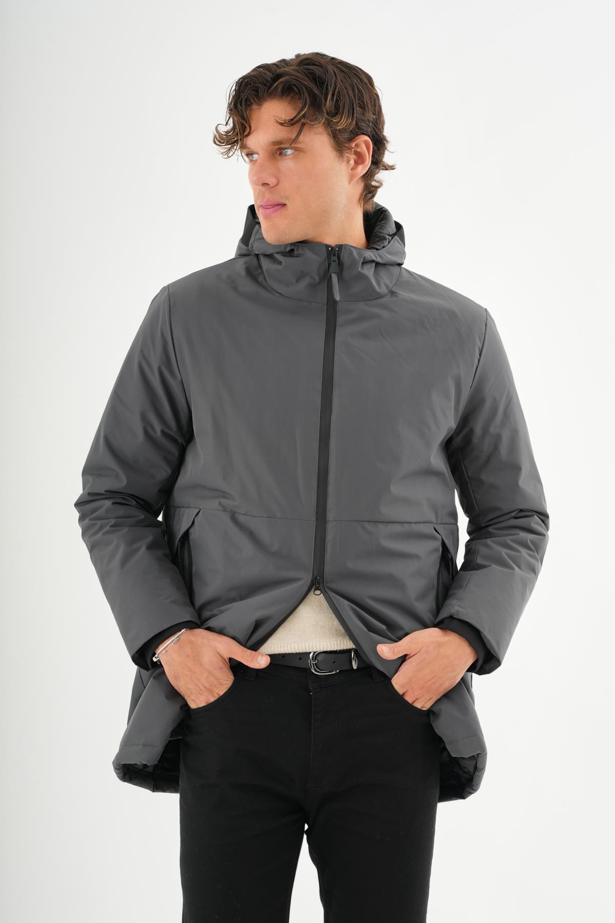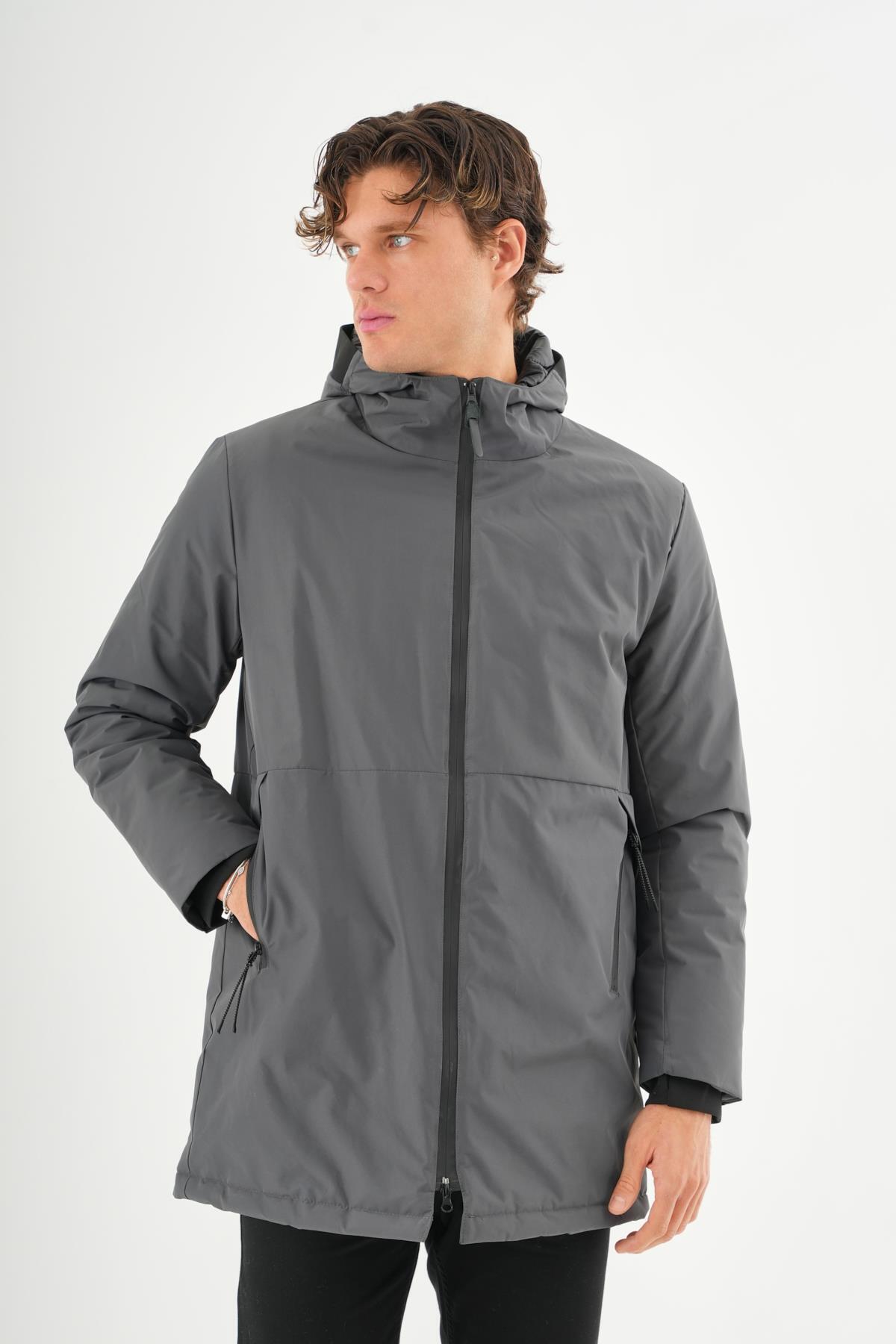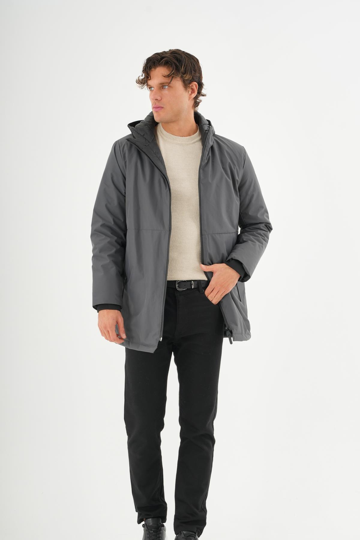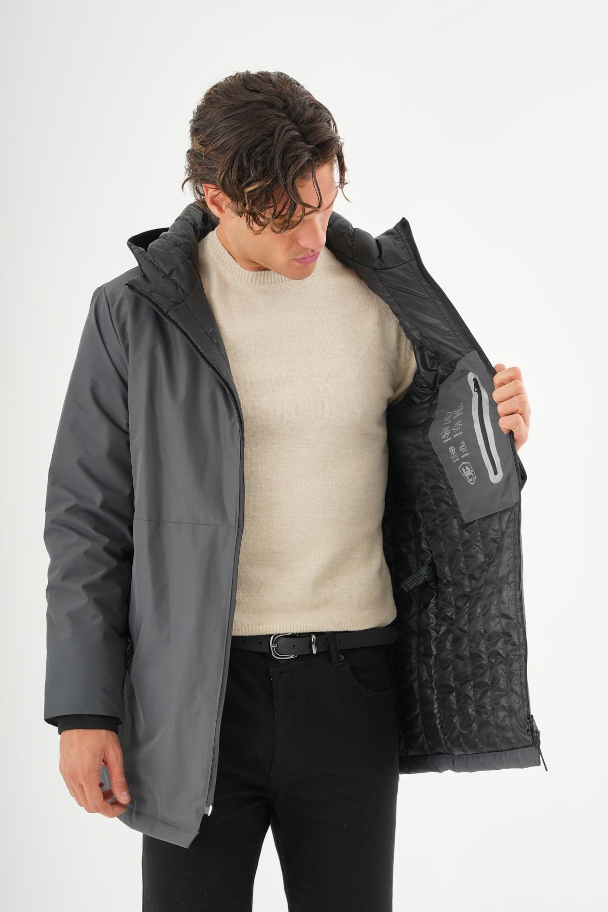 کاپشن زمستانی کلاسیک مردانه چند جیب کلاهدار سایز معمولی زیپدار