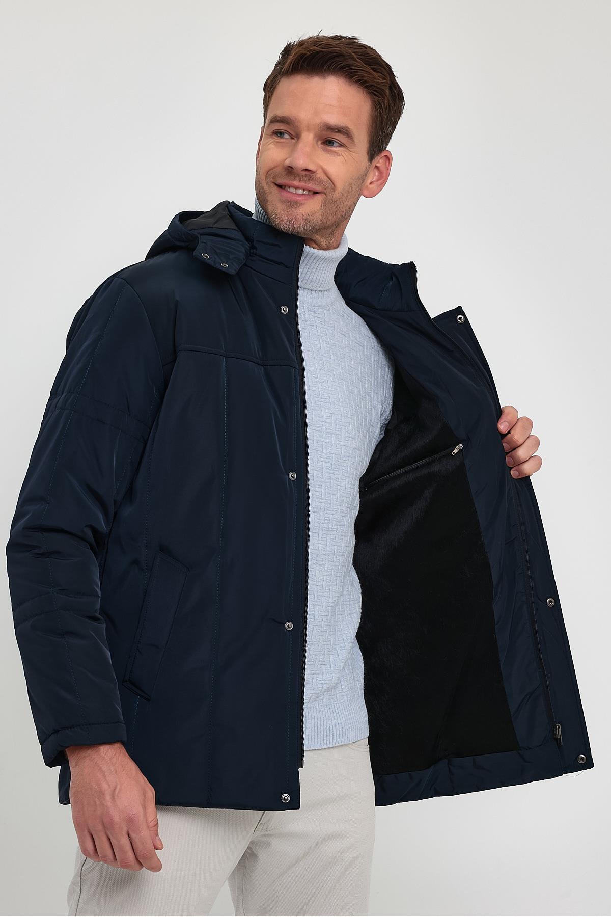 کاپشن مردانه سرمه‌ای استاندارد، یقه ایستاده، کلاه‌دار، جداشدنی، سایز معمولی