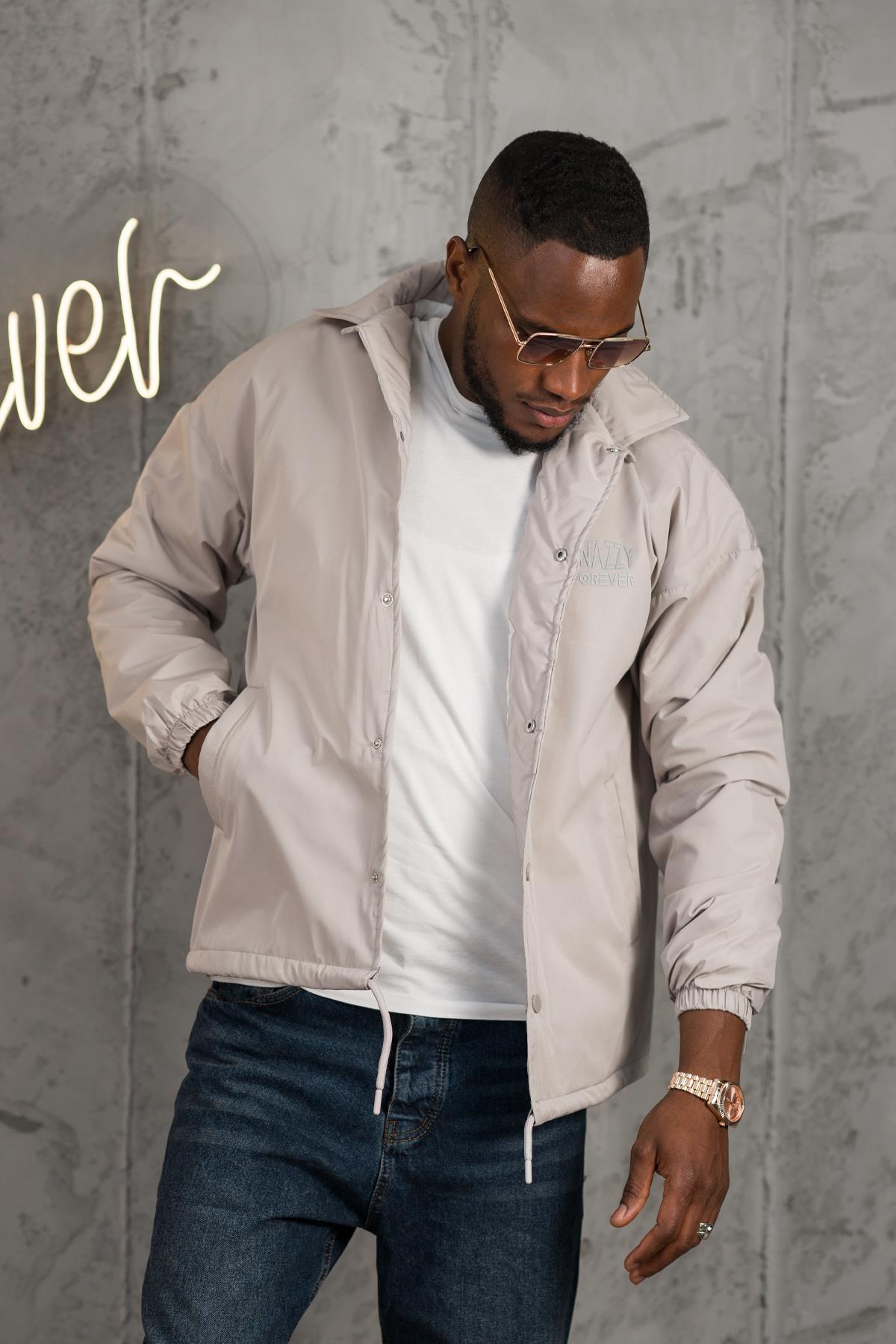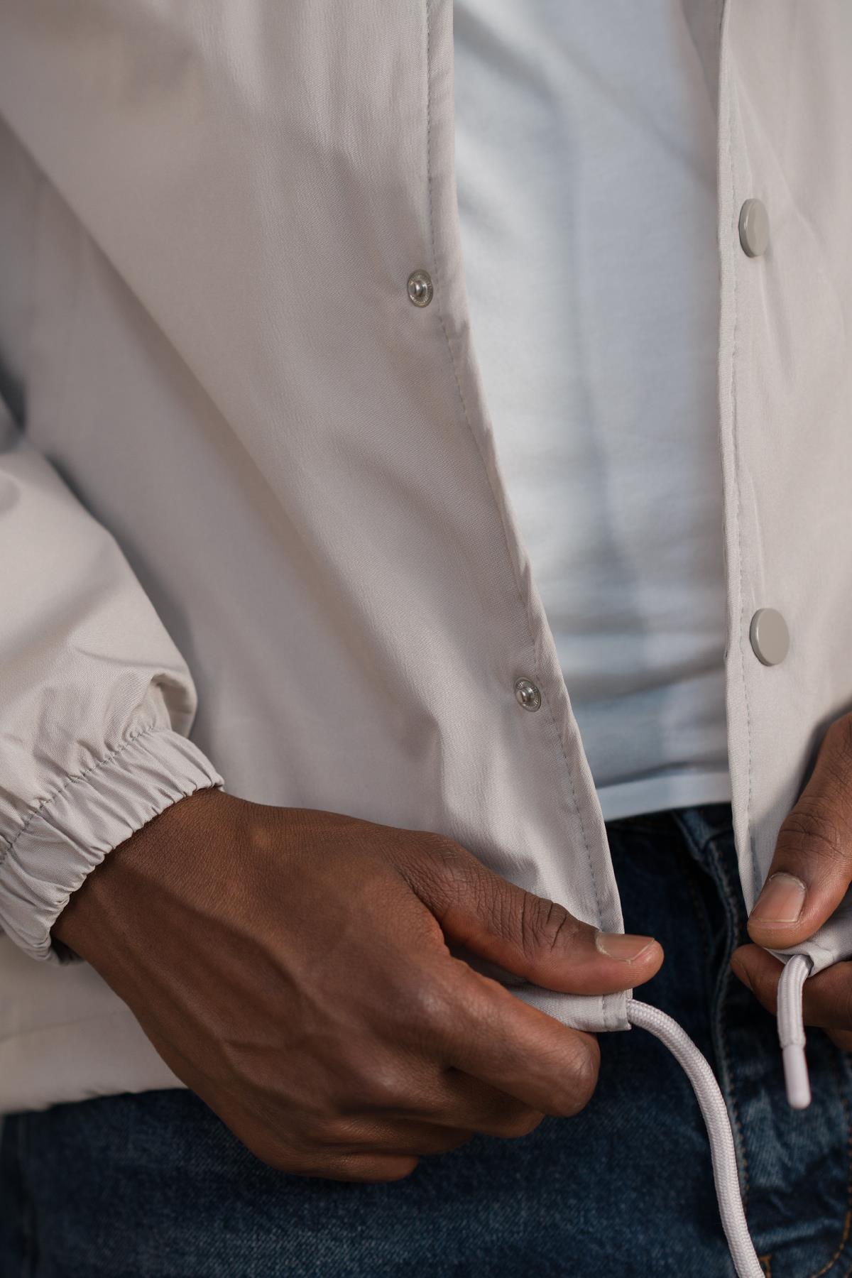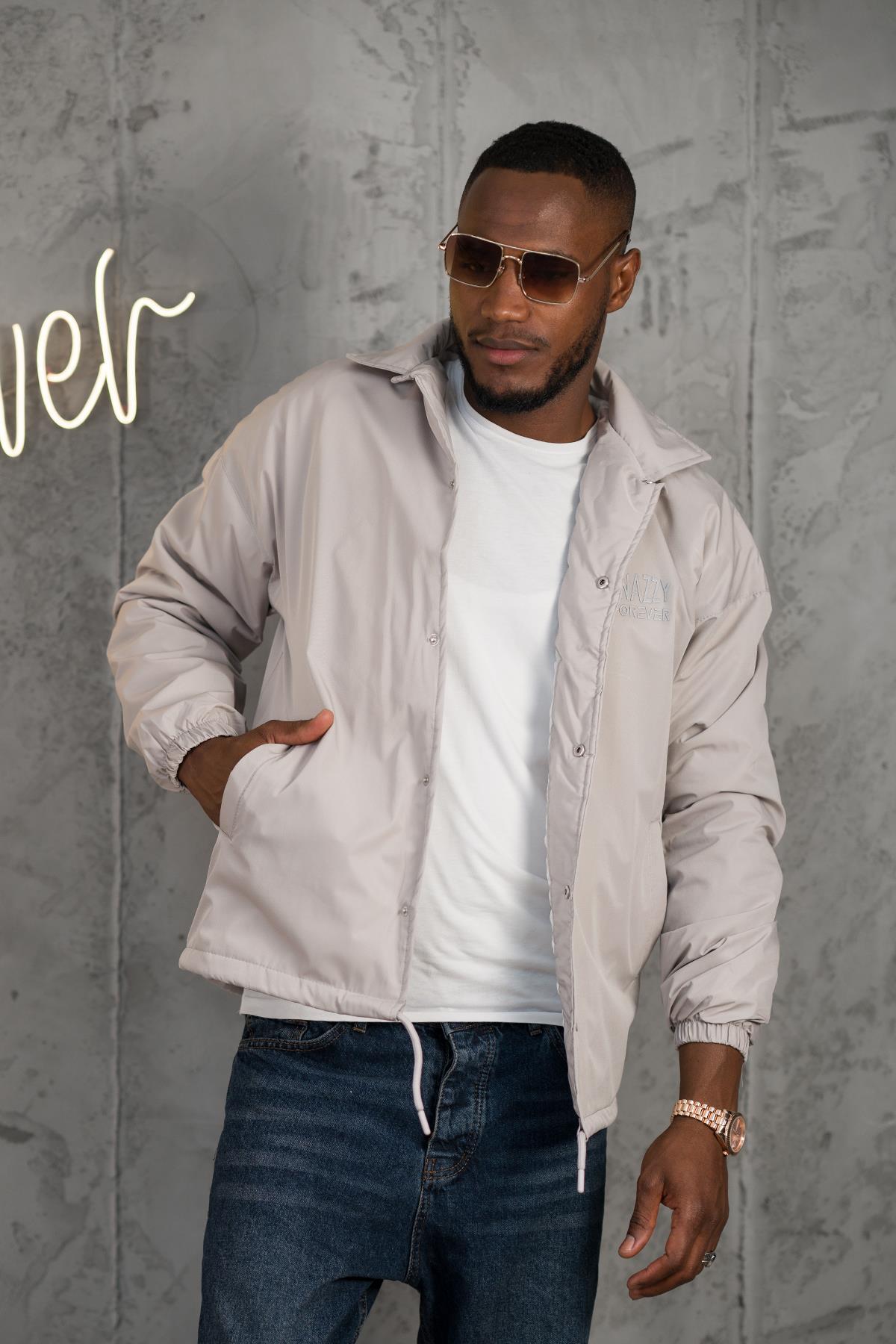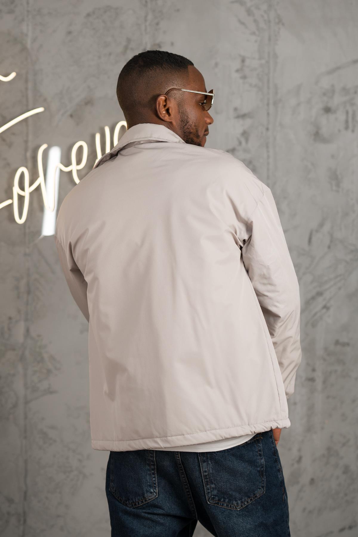 کاپشن بهاره سبک و پددار سایز بزرگ با سرآستینهای کشی و بسته شدن با دکمه فشاری.