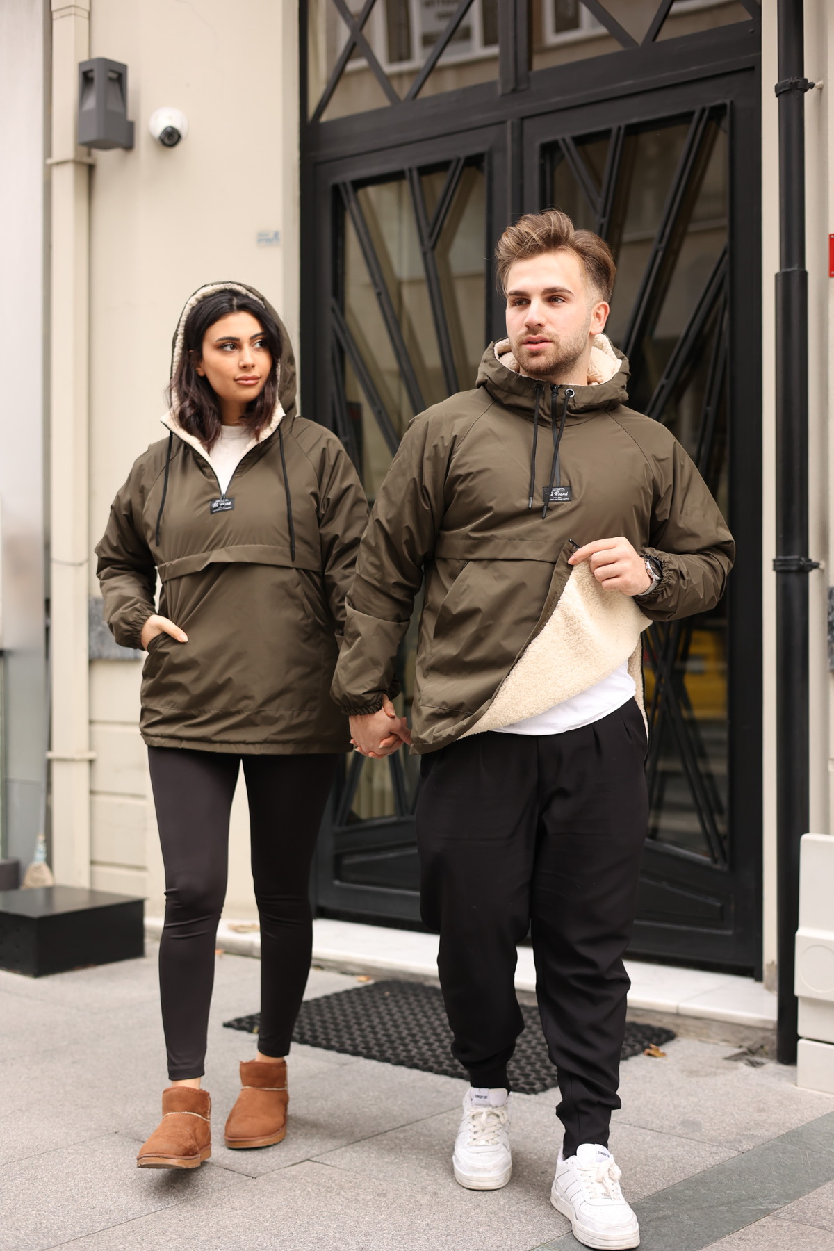 کاپشن جیبدار کانگورو با آستر خزدار، ضد آب، مناسب برای همه سنین.