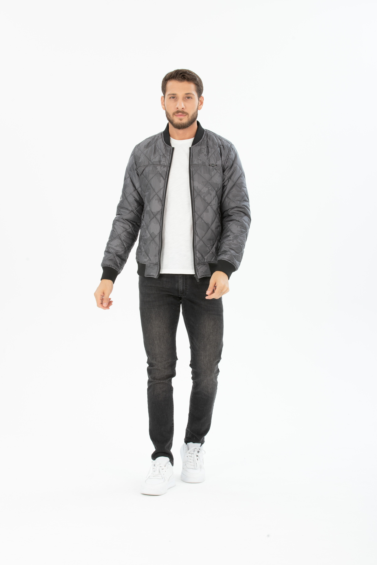 کاپشن پفی خلبانی طرحدار خالخالی مردانه