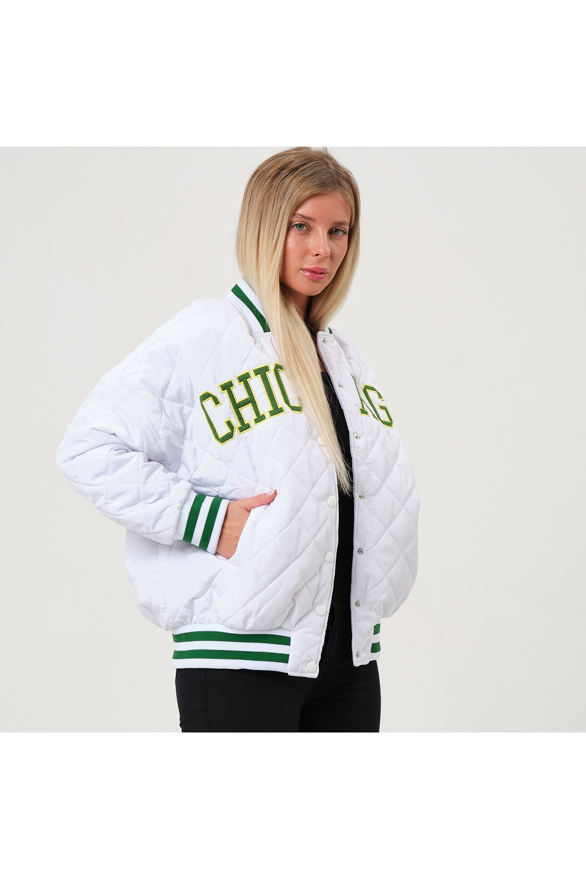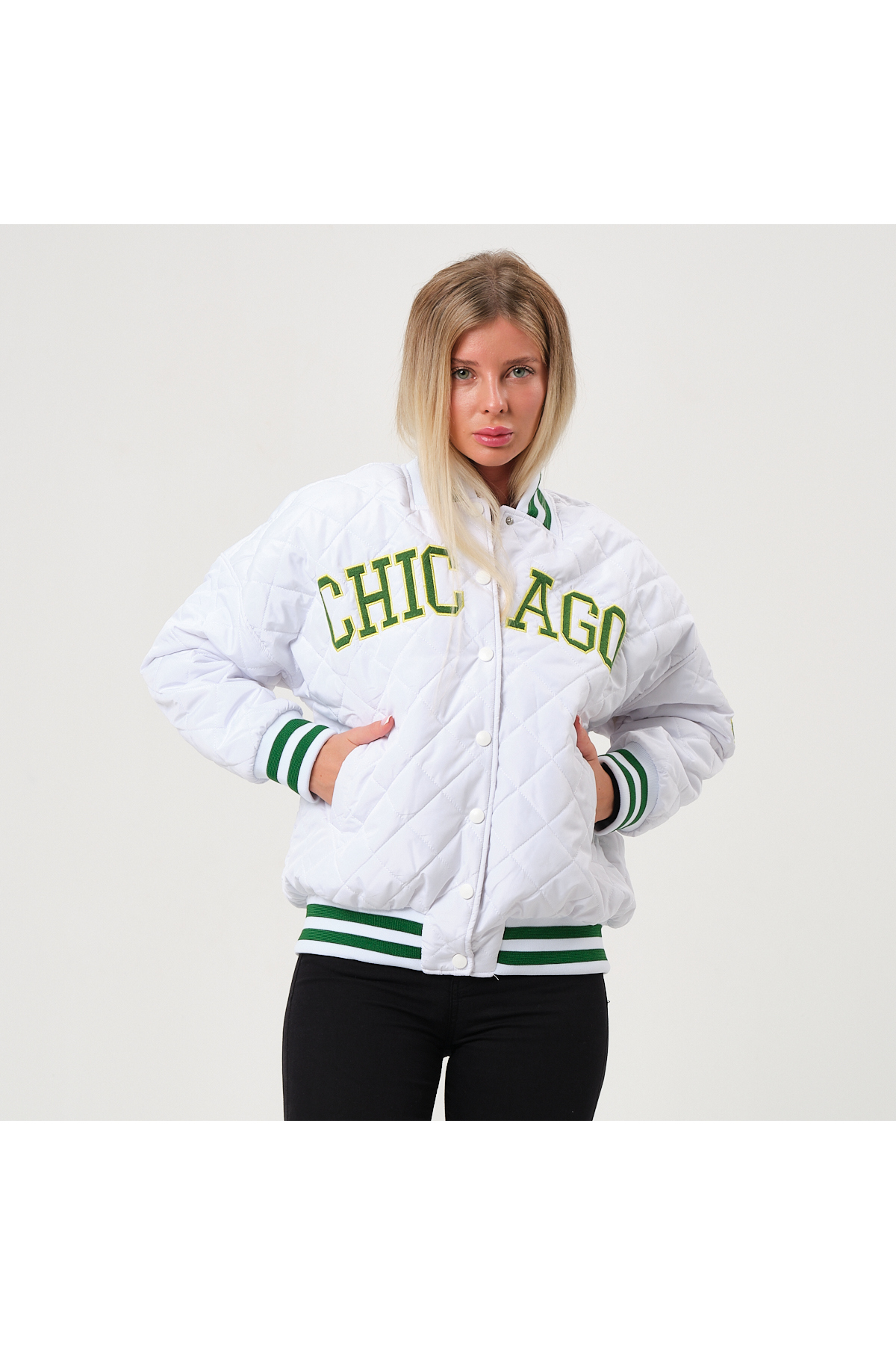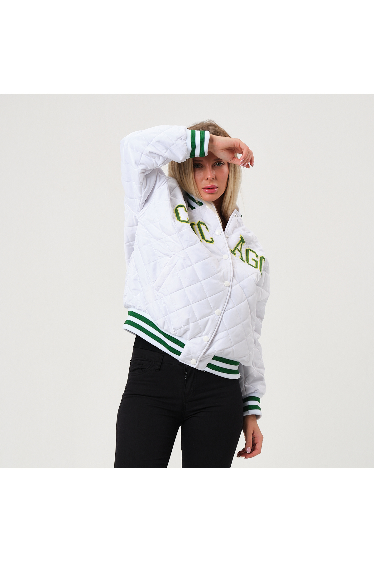 ژاکت دانشگاهی سفید-سبز