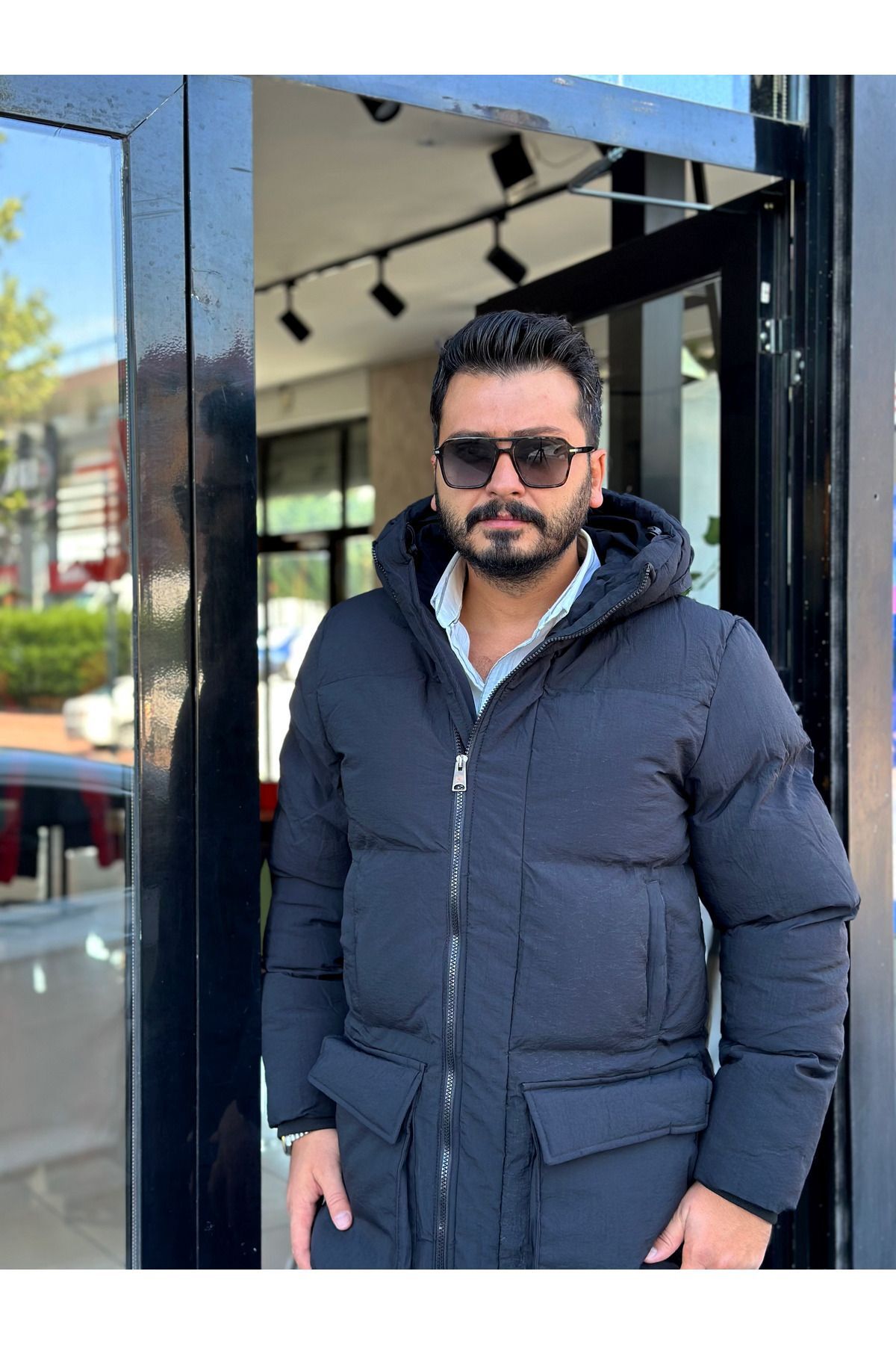 کاپشن مردانه بلند، جیبدار، سایز معمولی، ترکیبی از پر و الیاف، کت زمستانی (23/24)