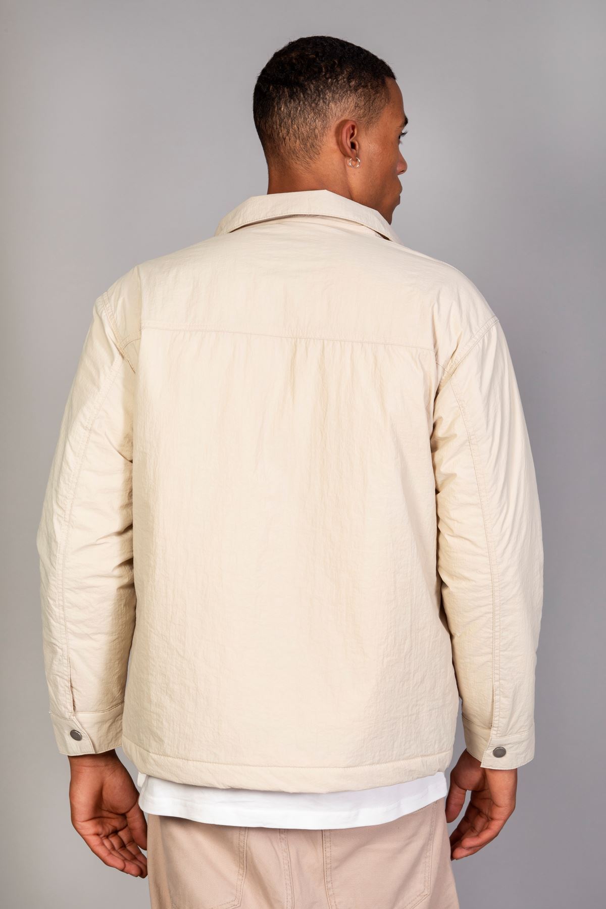 کاپشن پفی مردانه بژ (آستر الیاف لحافی) با فرم بدن راحت و چیندار
