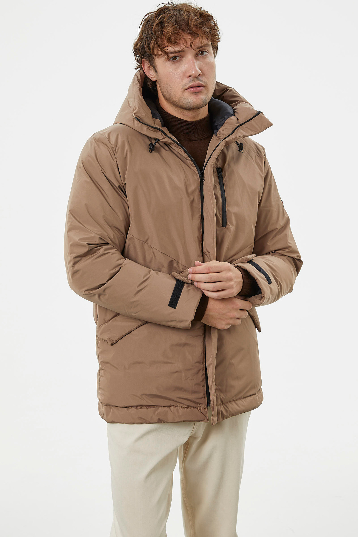کاپشن پفی کلاهدار با جزئیات آستین – سمور یا راسو