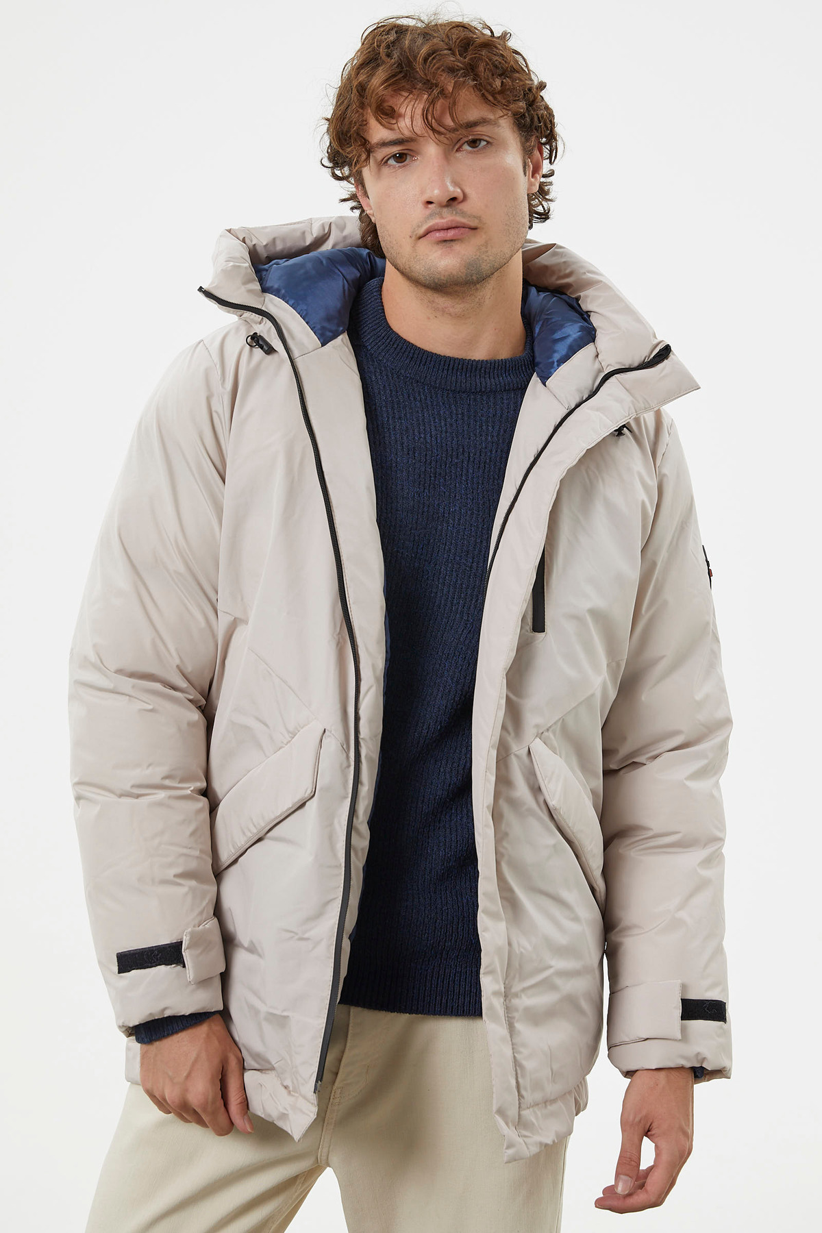کاپشن پفی کلاهدار با جزئیات آستین – سنگی