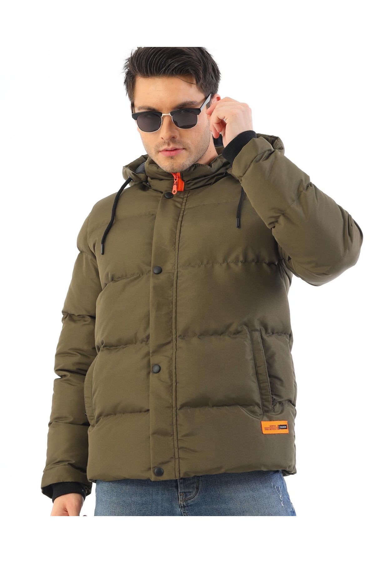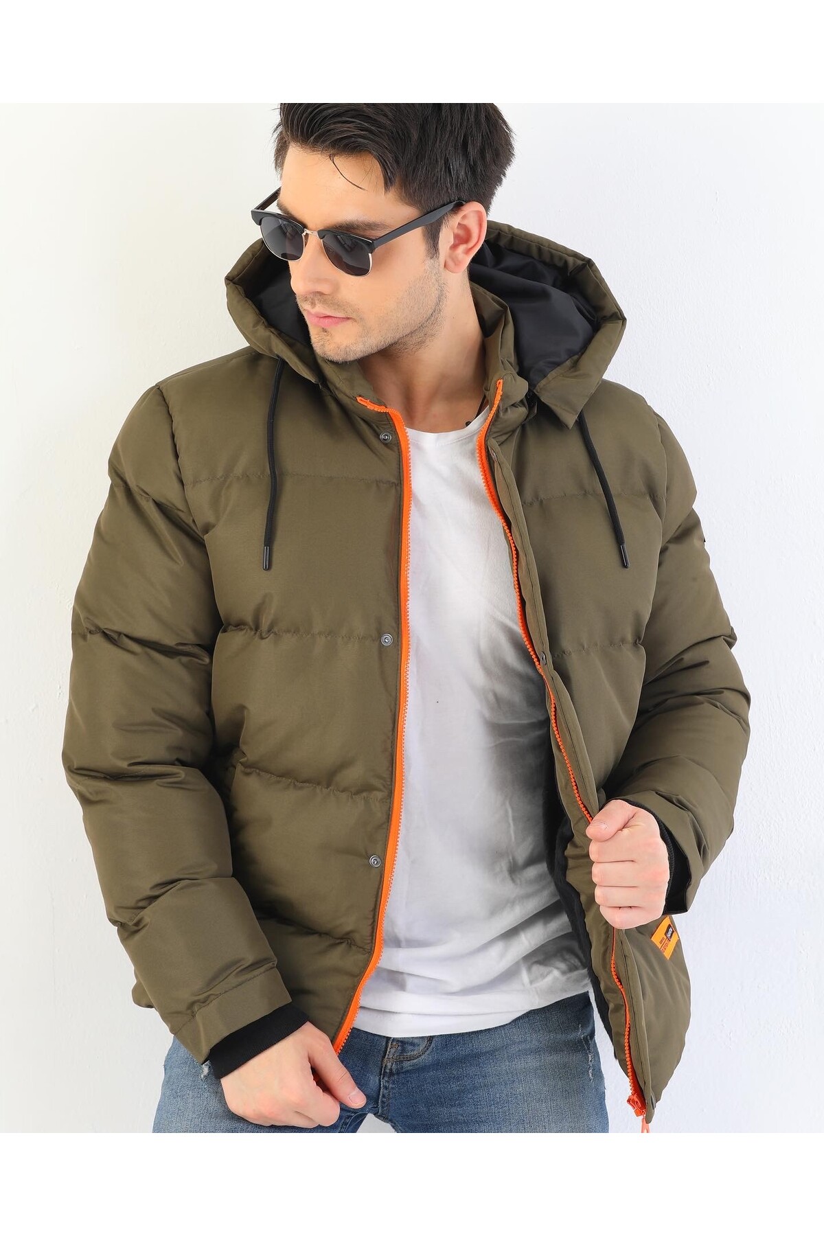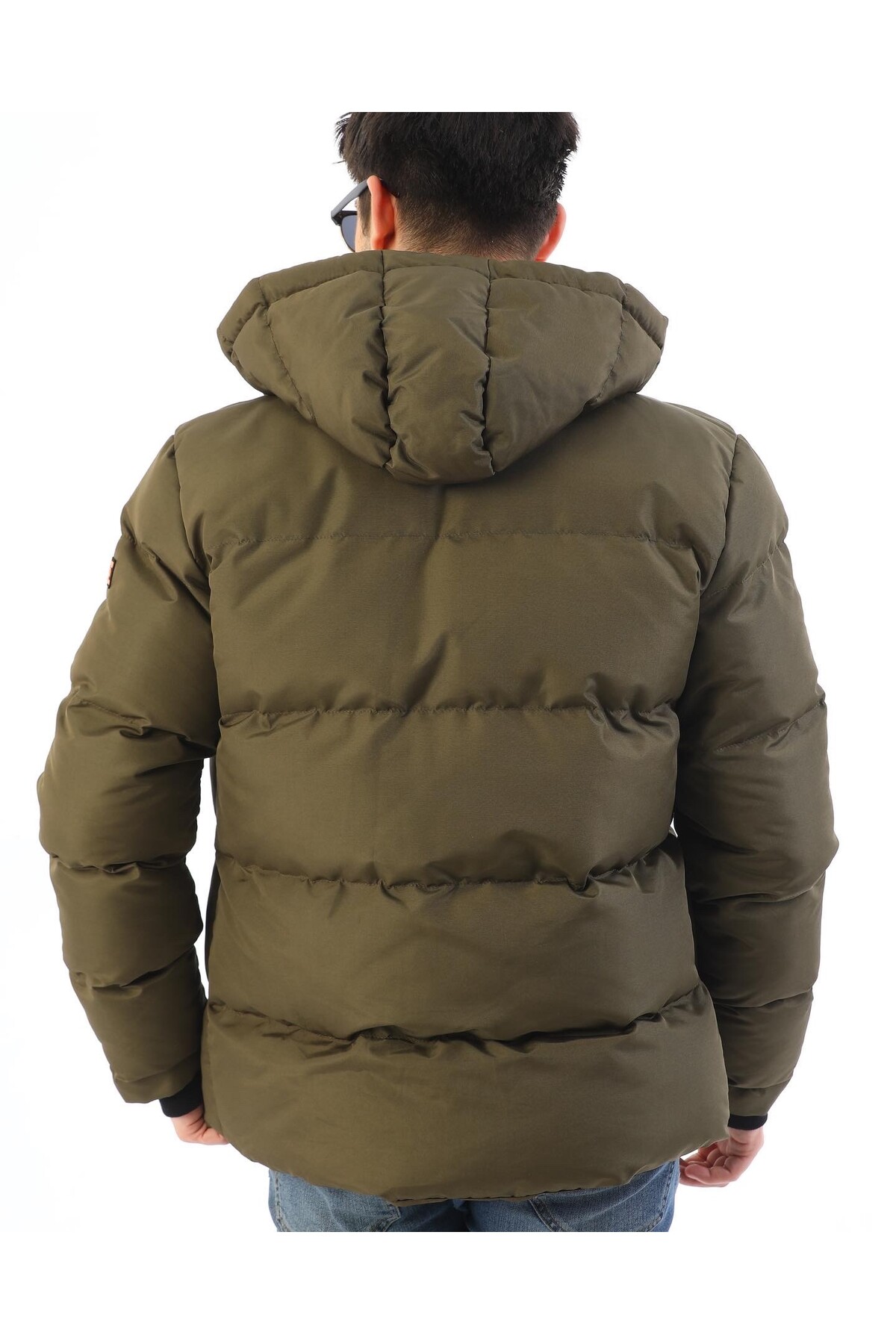 کاپشن مردانه خاکی رنگ با زیپ ضد آب و باد و آستر خزدار.