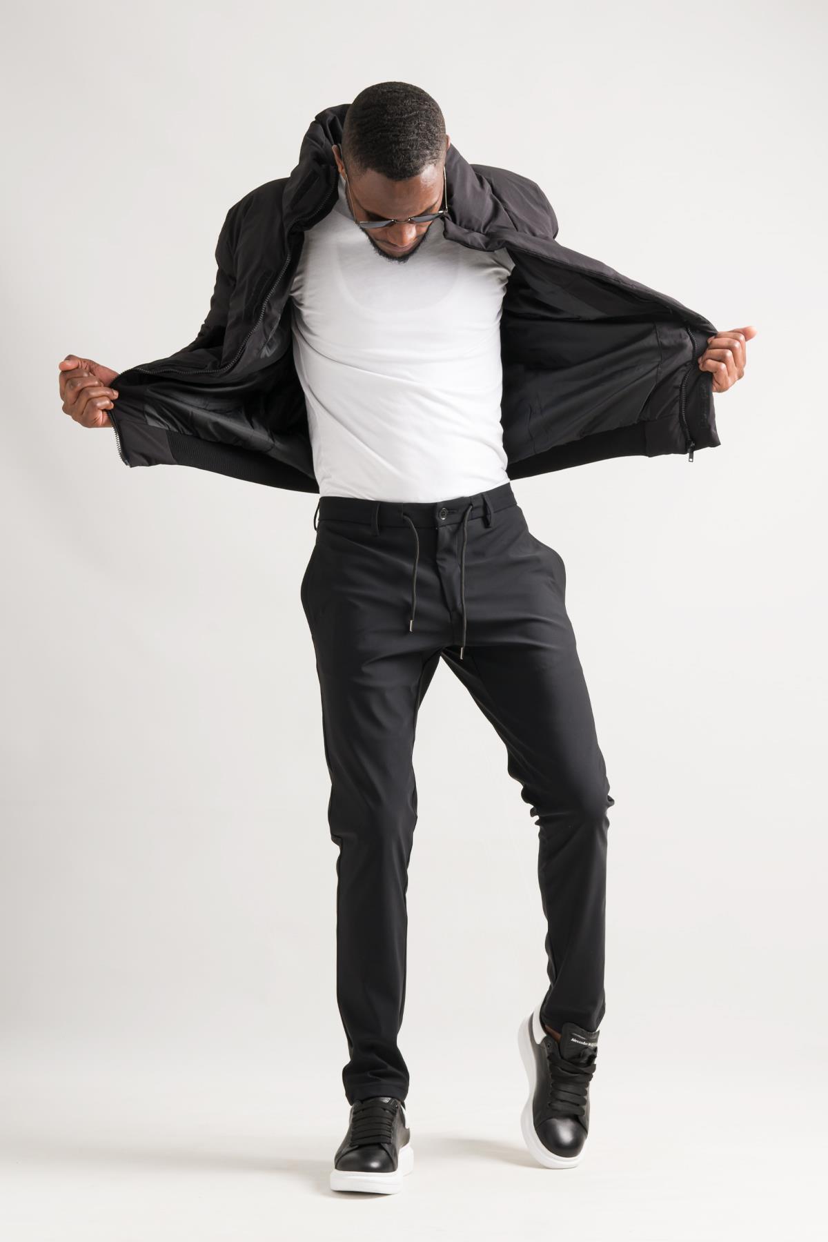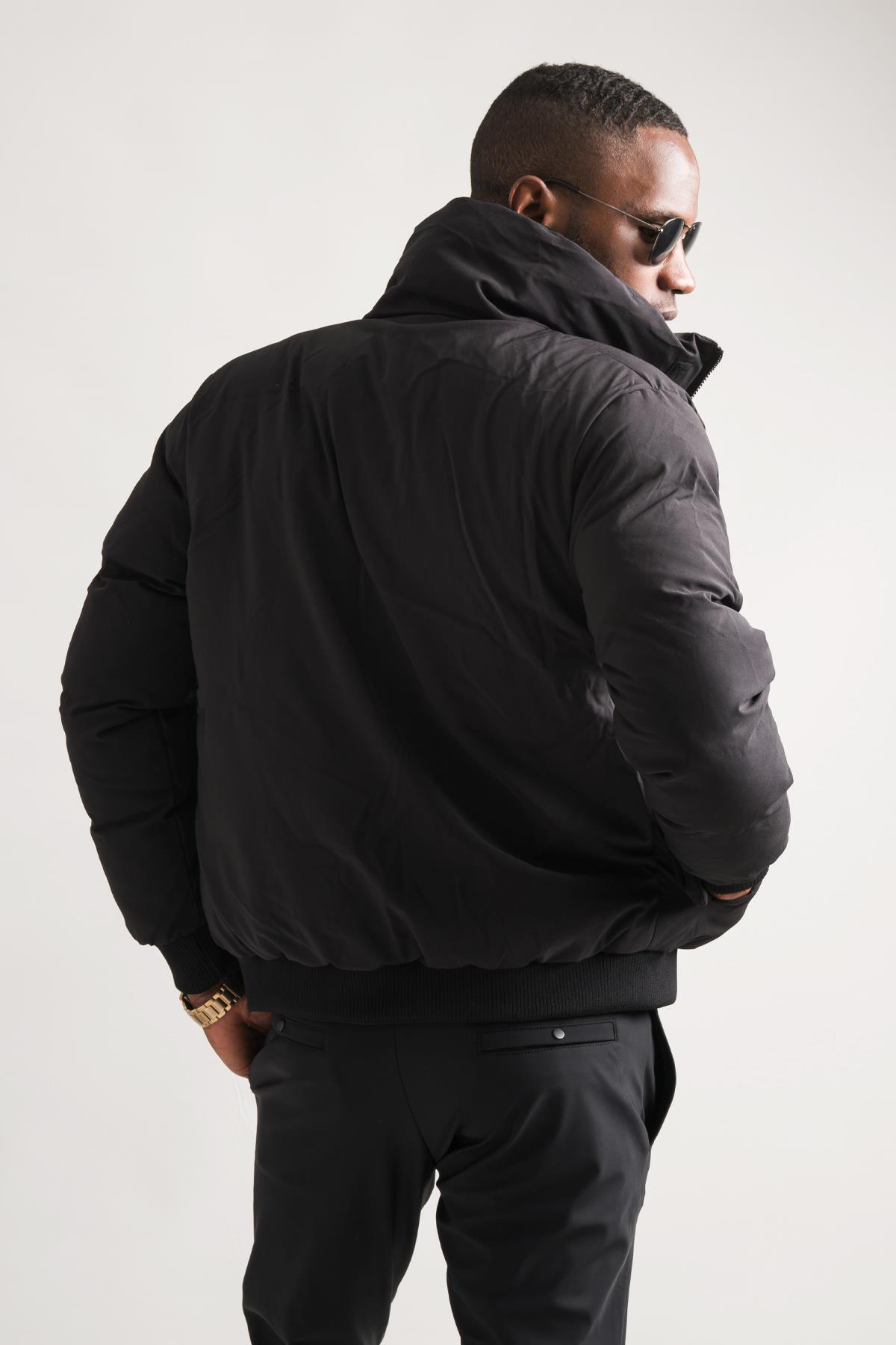 فرم معمولی، یقه ایستاده، زیپ و چسب ولکرو، کمر و سرآستین کشسان، کاپشن کوتاه اسپرت پافر.