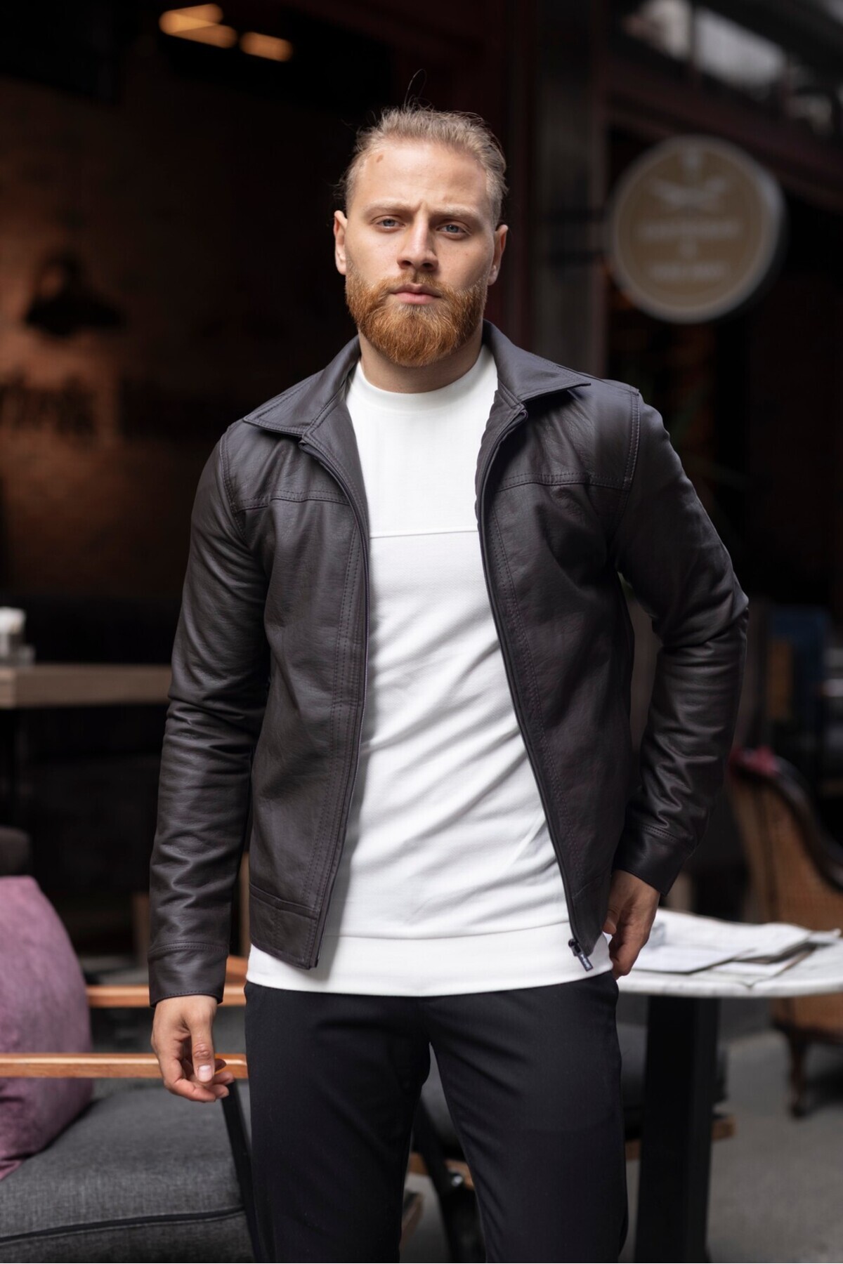 کاپشن قهوه ای آستین استاندارد چرم مصنوعی | | نمایندگی
