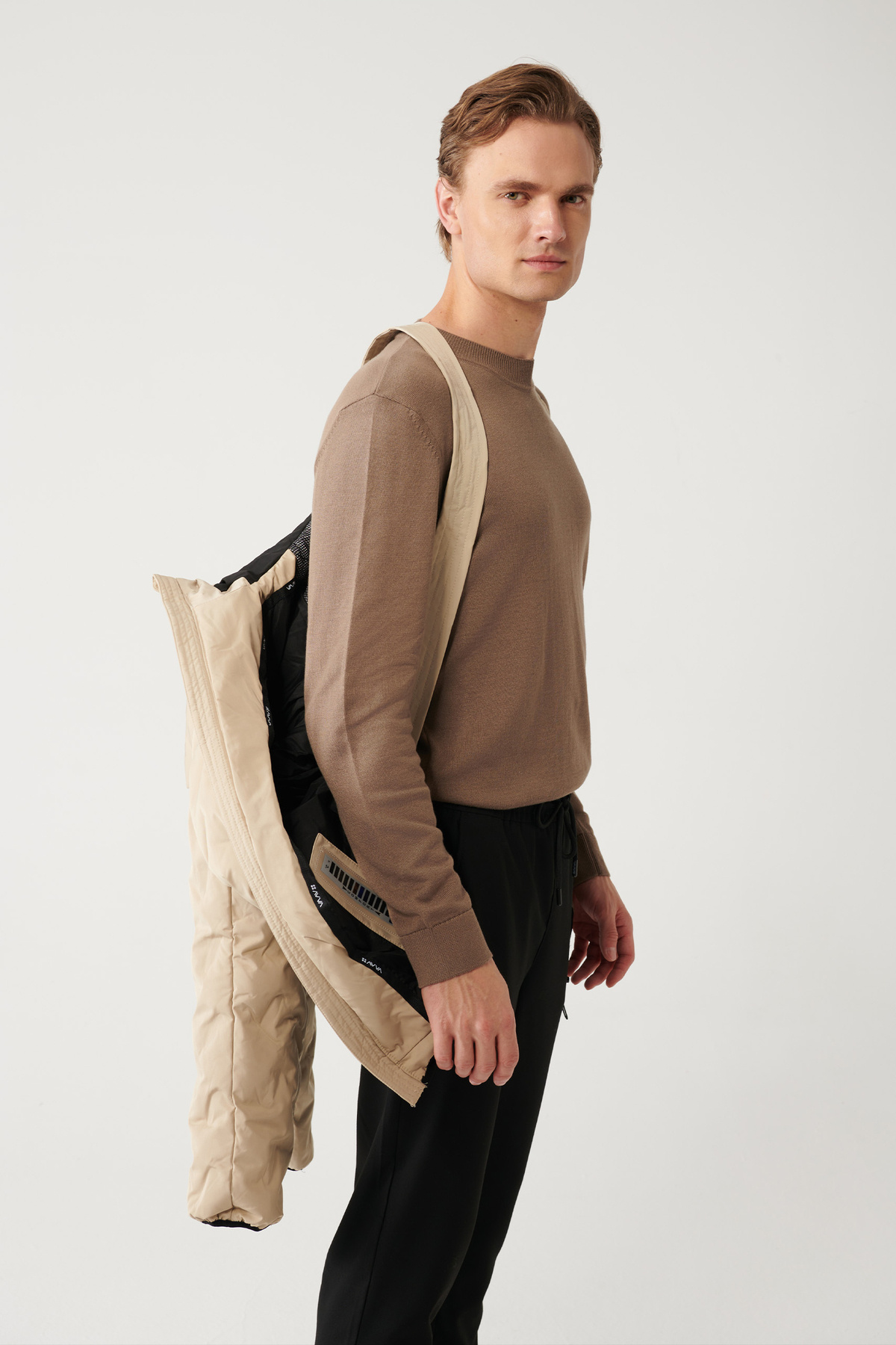 کاپشن مردانه پفی طرحدار بژ با پارچه ضد آب A32Y6041