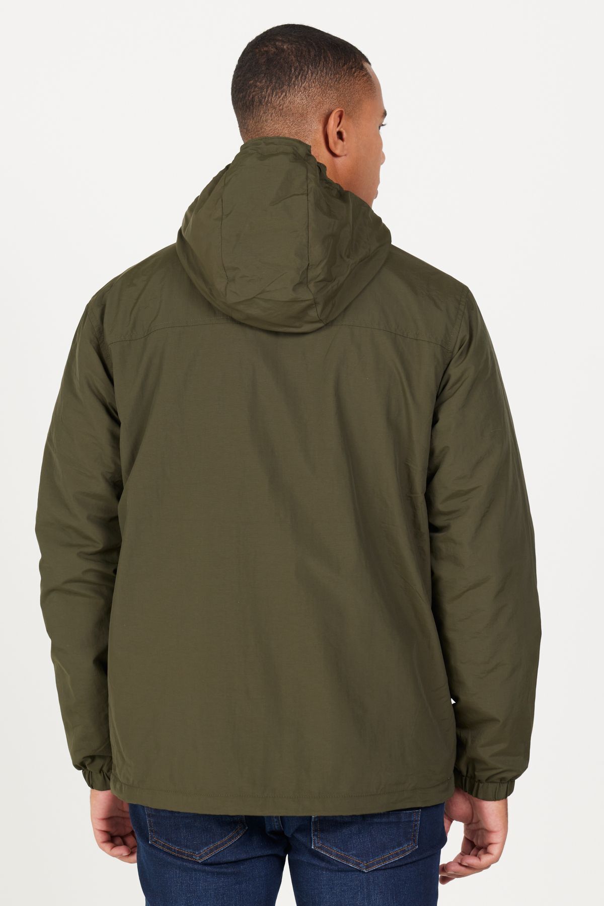 کاپشن مردانه کلاهدار خاکی استاندارد برش معمولی با جیبهای کناری