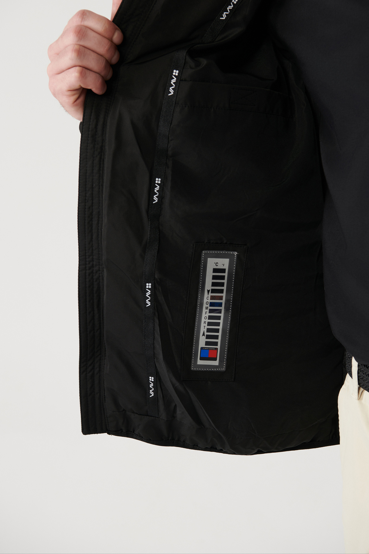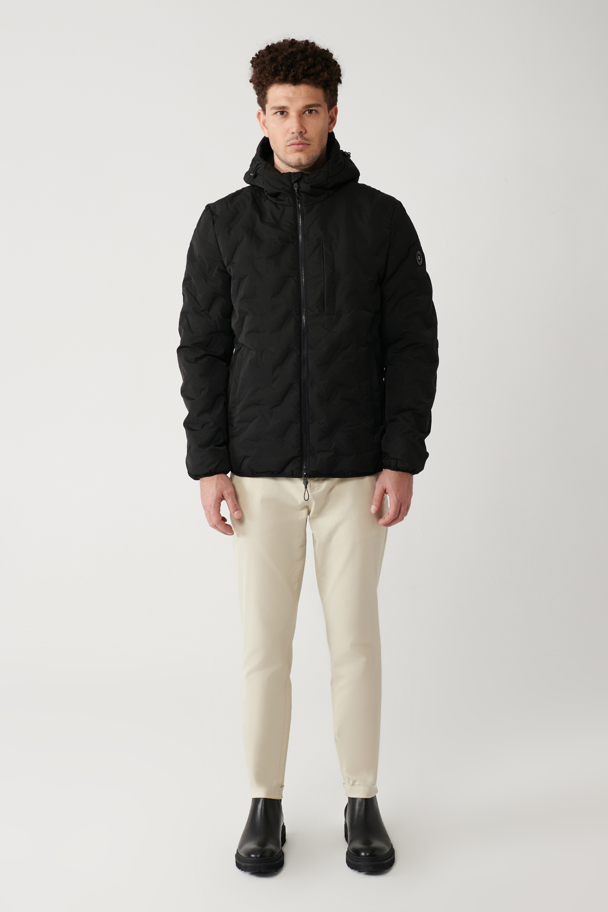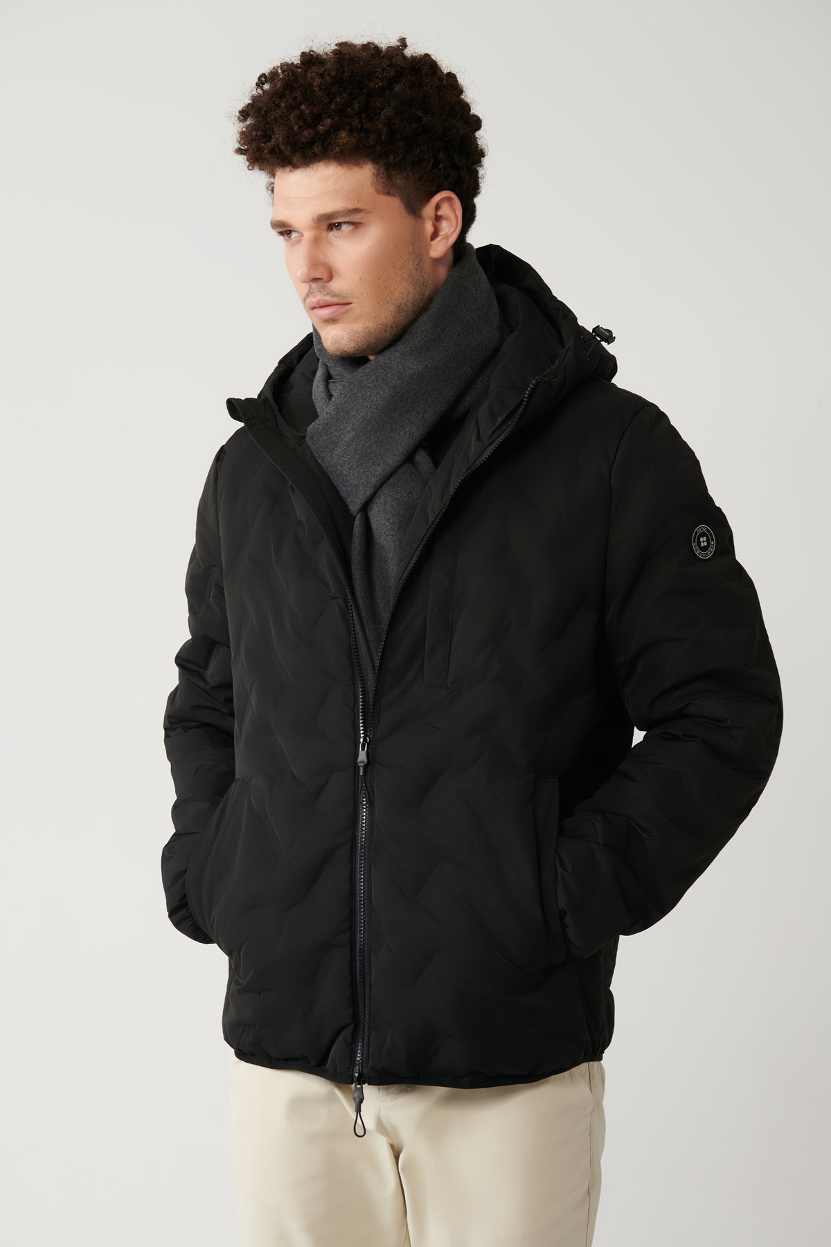 کاپشن مردانه پفی کلاهدار مشکی پددار با پارچه ضد آب A32Y6041