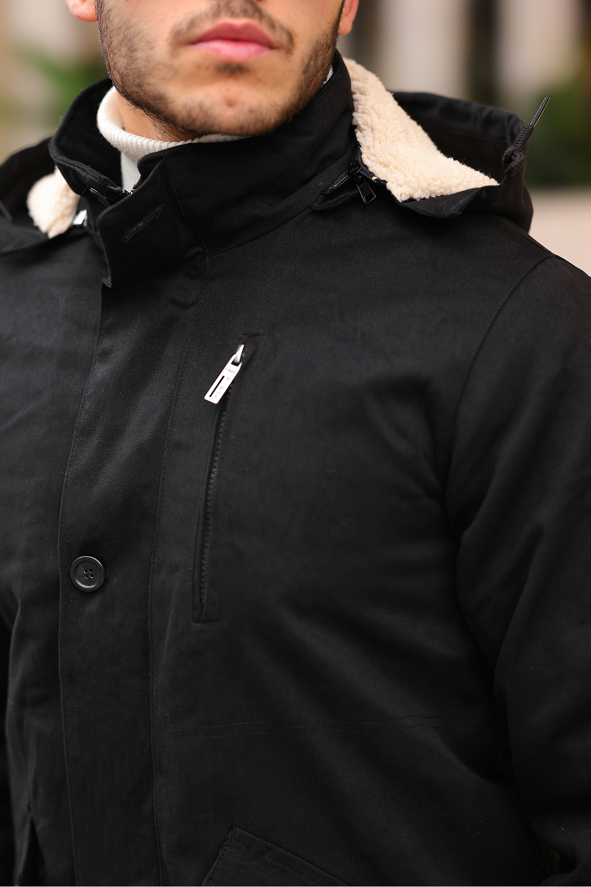 کت/ژاکت/پارکای مردانه مشکی، آستردار، مقاوم در برابر سرما.