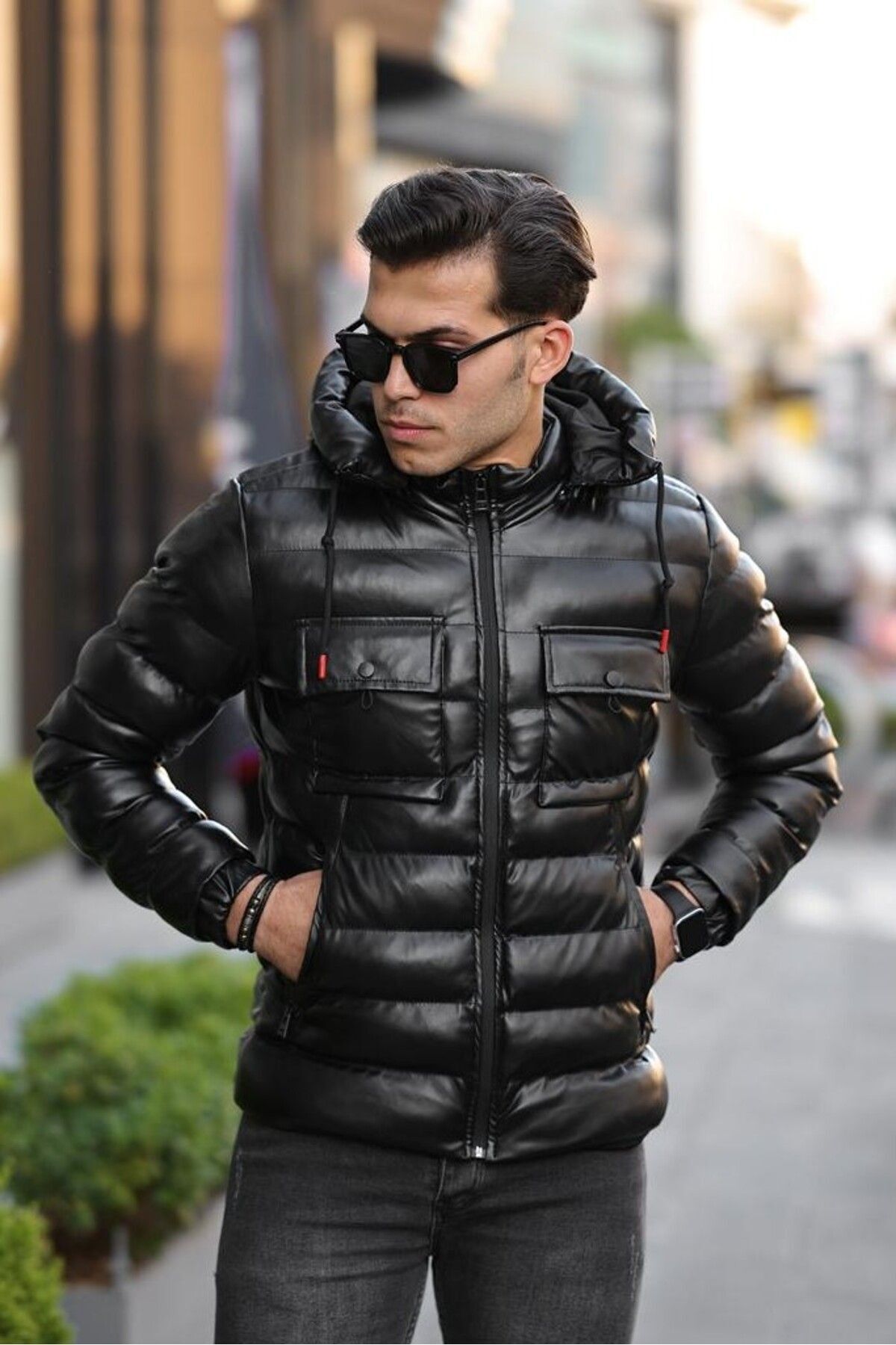 کاپشن چرمی مردانه ضد آب و باد با کلاه جداشونده.