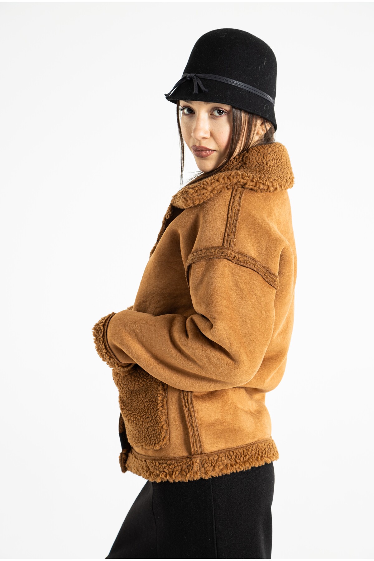 کاپشن قهوه ای آستین بلند خز مصنوعی | | نمایندگی