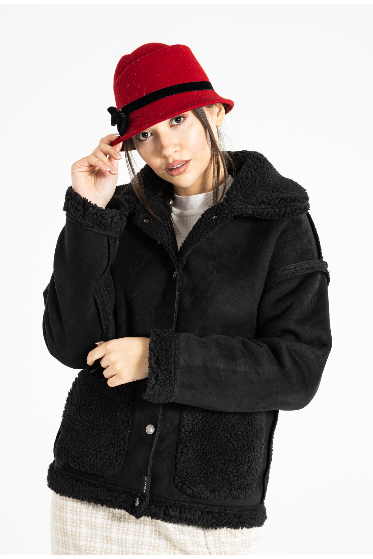 کاپشن مشکی آستین بلند خز مصنوعی | | نمایندگی