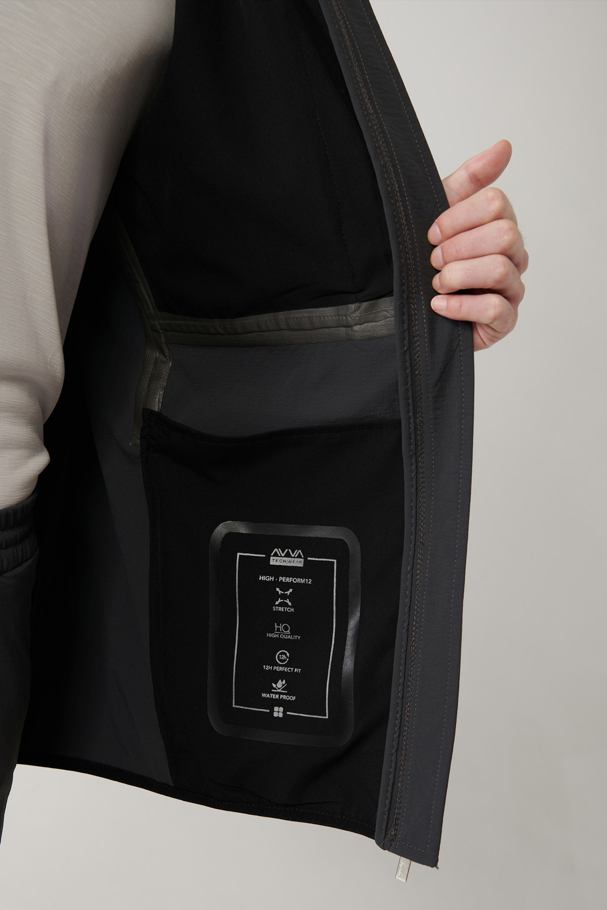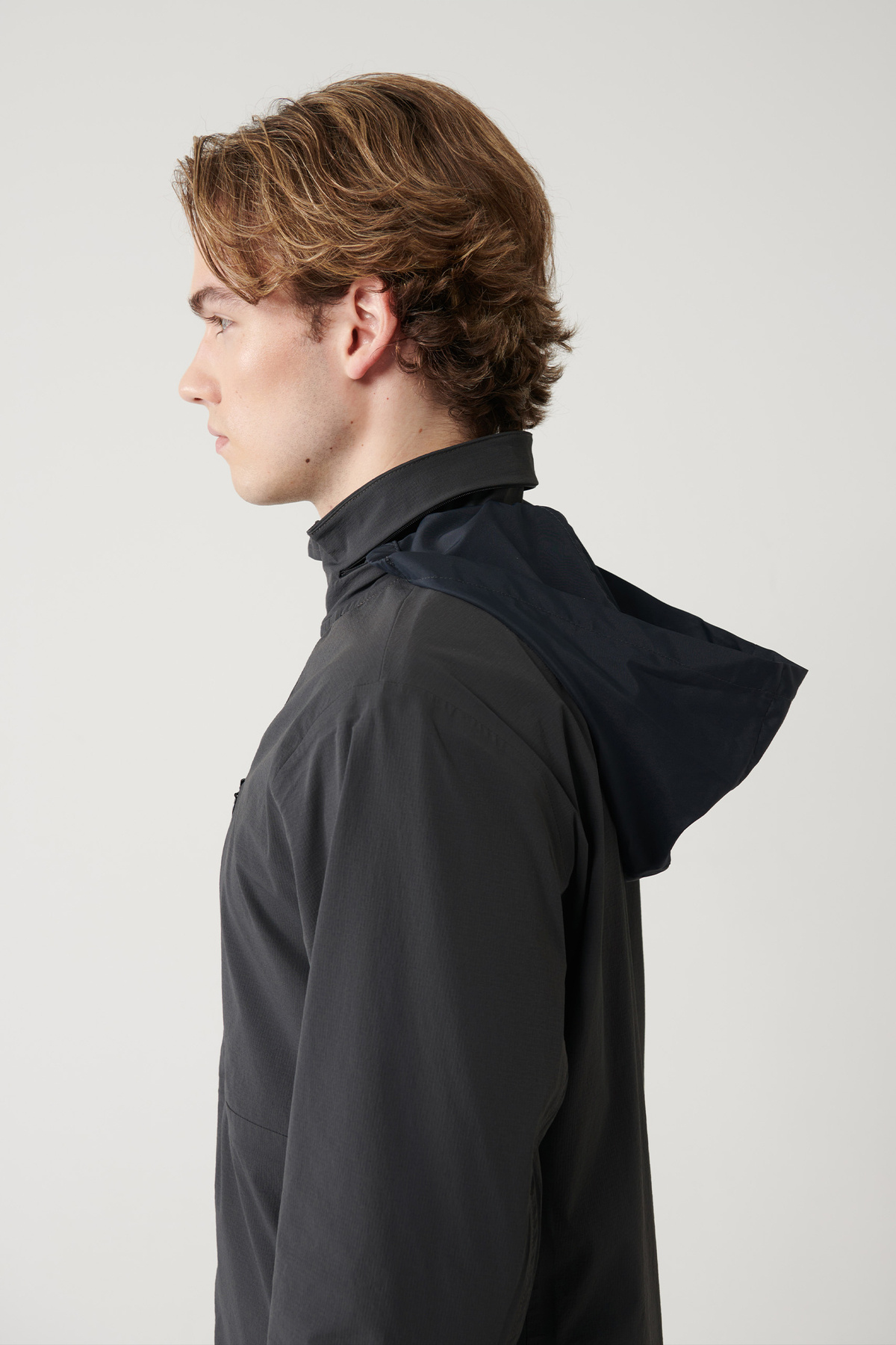 کاپشن مردانه یقه ایستاده آنتراسیت، کلاه دار، زیپ دار، ضد آب، دو حالت کشسان، مناسب برای راحتی A41Y6035