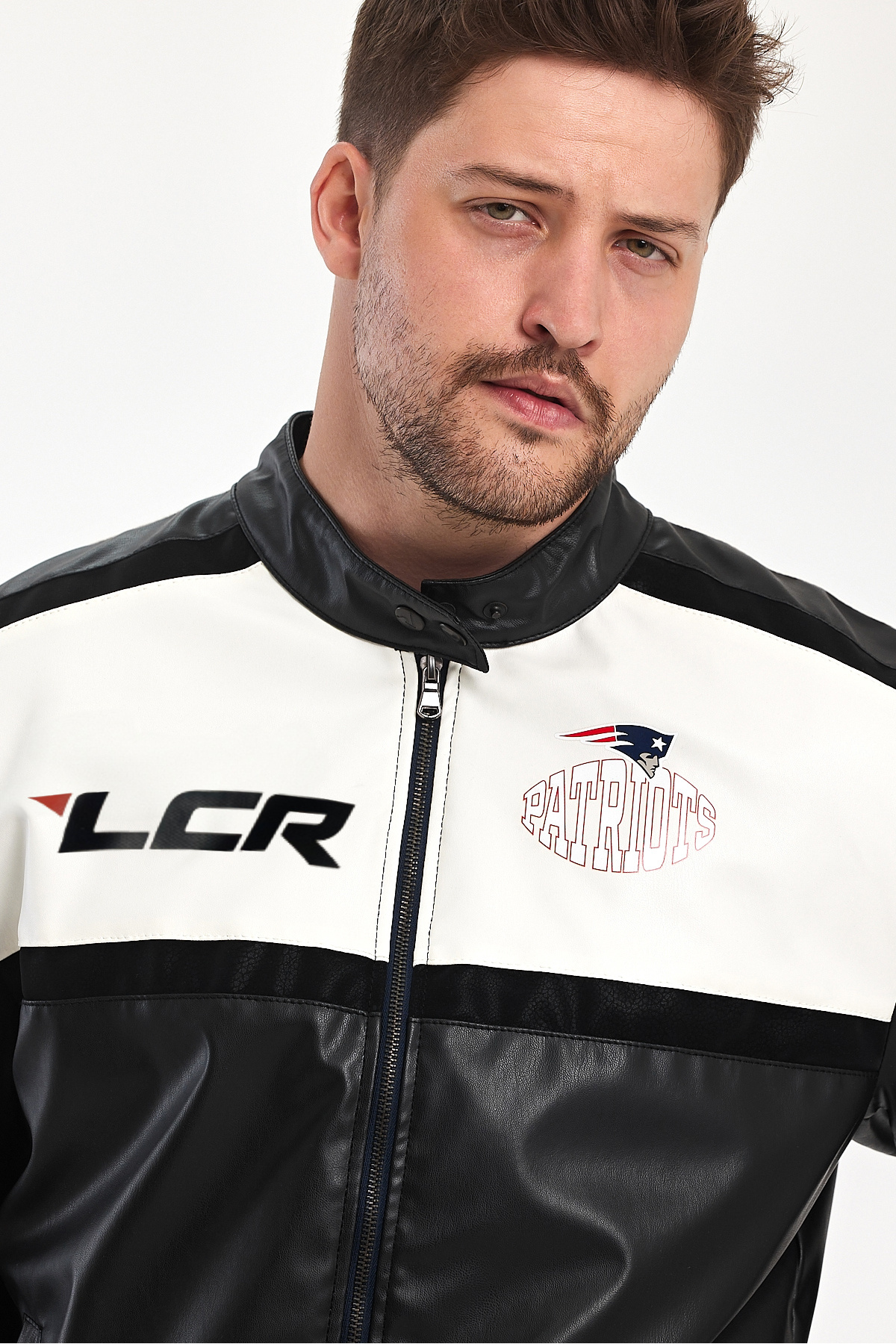 کاپشن مردانه سایز بزرگ طرح انتقالی مخصوص موتورسواران، کت کالج مسابقهای، کاپشن زیپدار راهراه