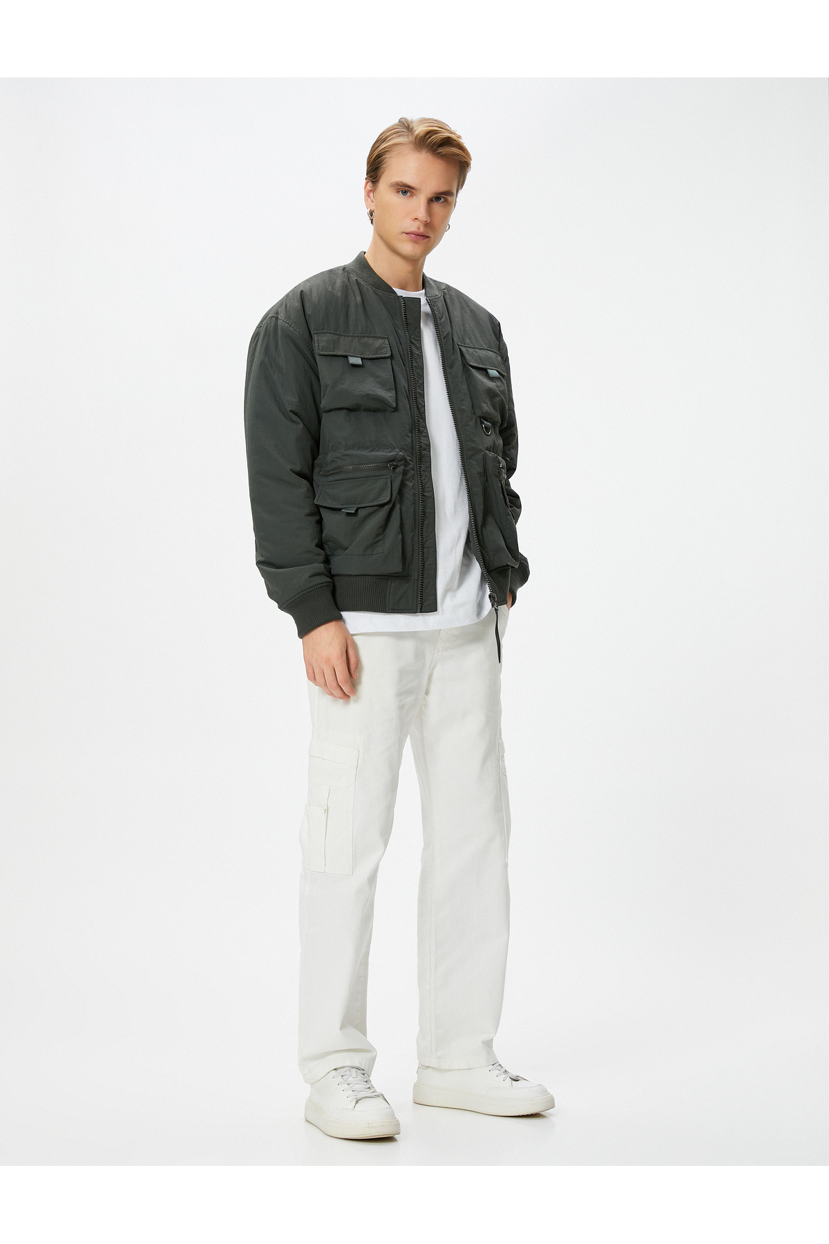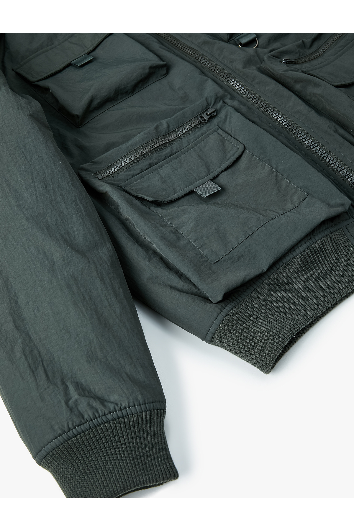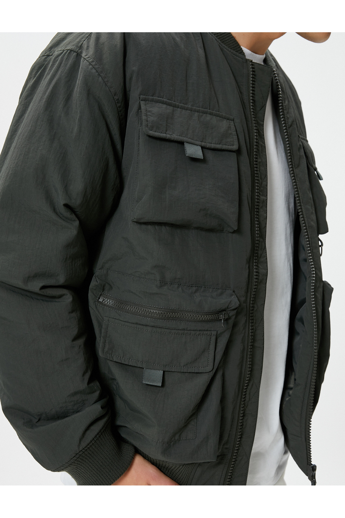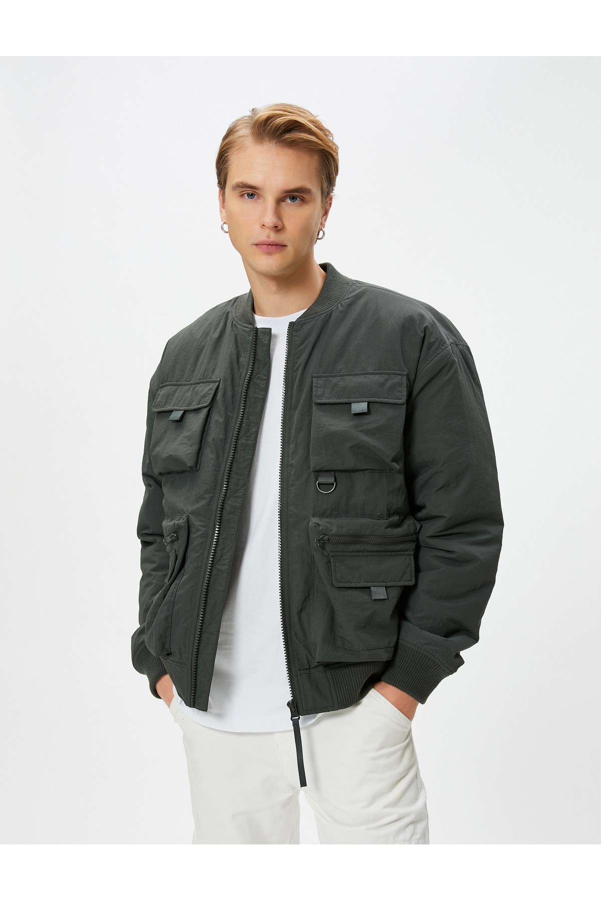 کاپشن بمبر با یقه کالج، جیب‌های ریز و زیپ.