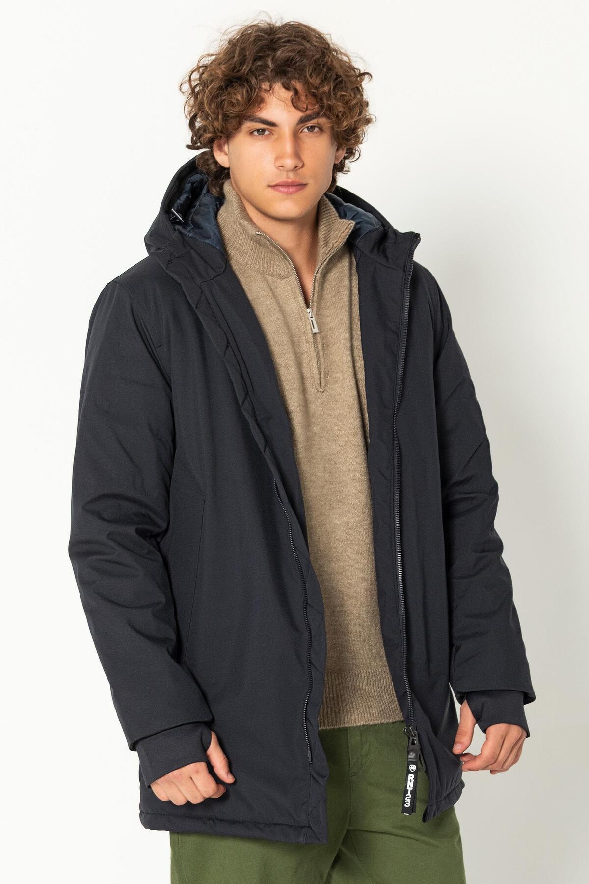 کاپشن زمستانی مردانه ضخیم کلاسیک با زیپ دوبل، ساخته شده از پارچه تکنولوژیک، ضد آب و باد.