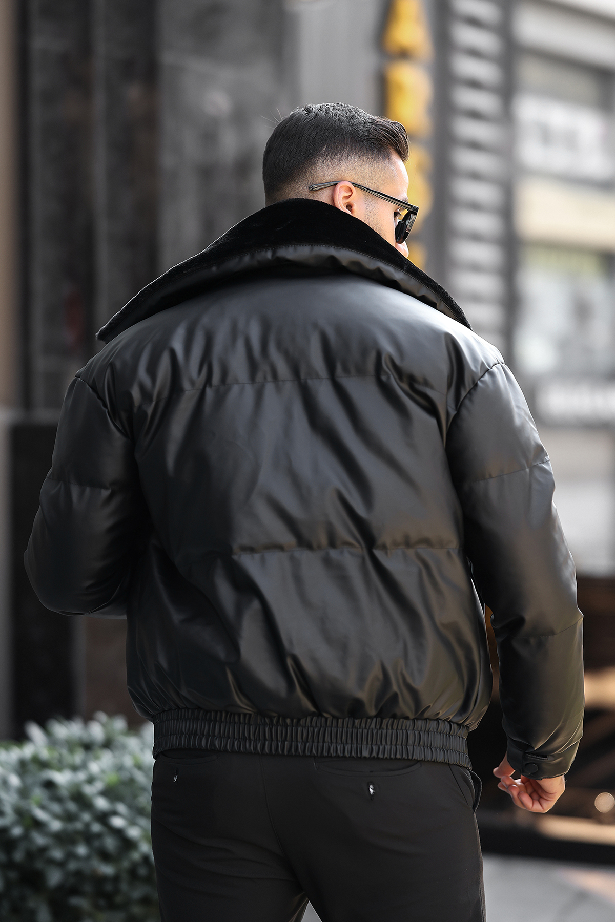 کاپشن چرمی مردانه پددار و براق با آستر خز