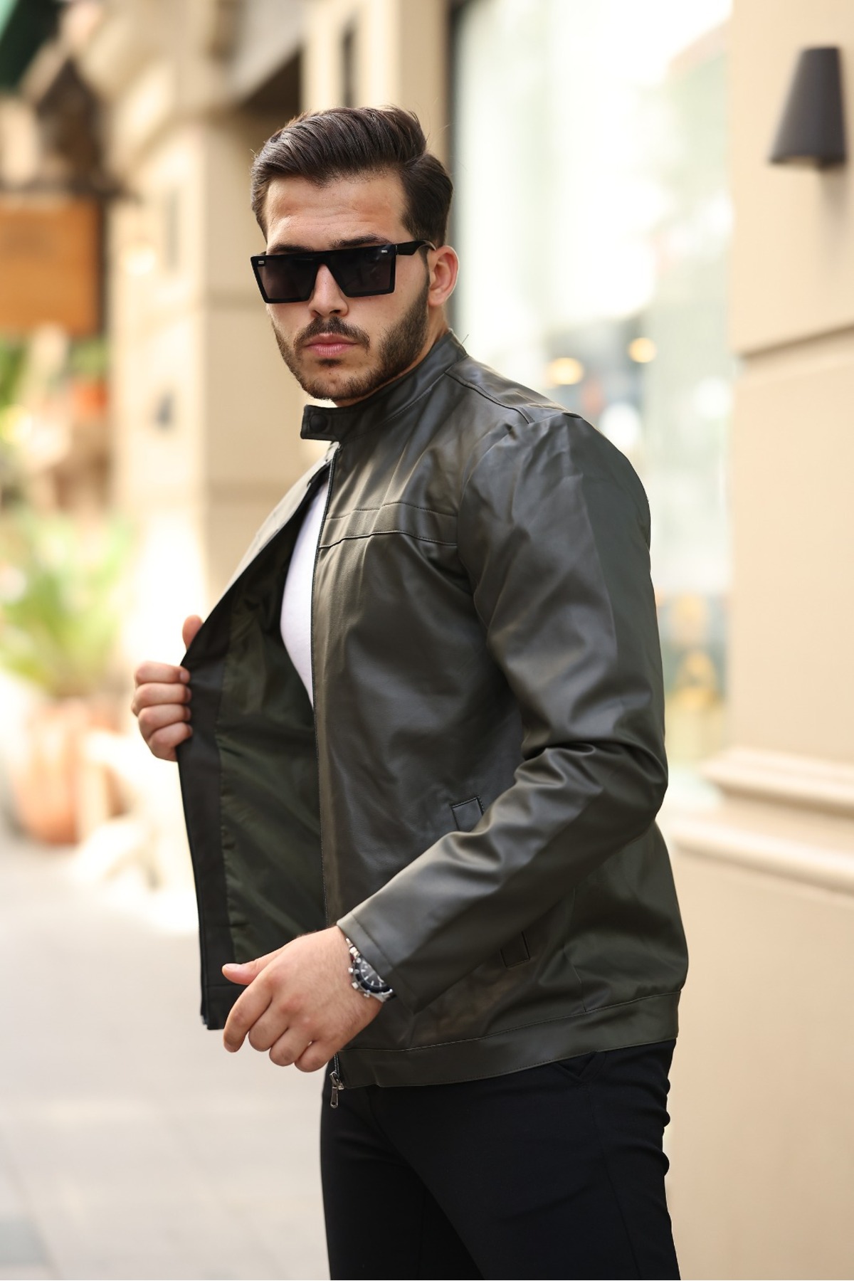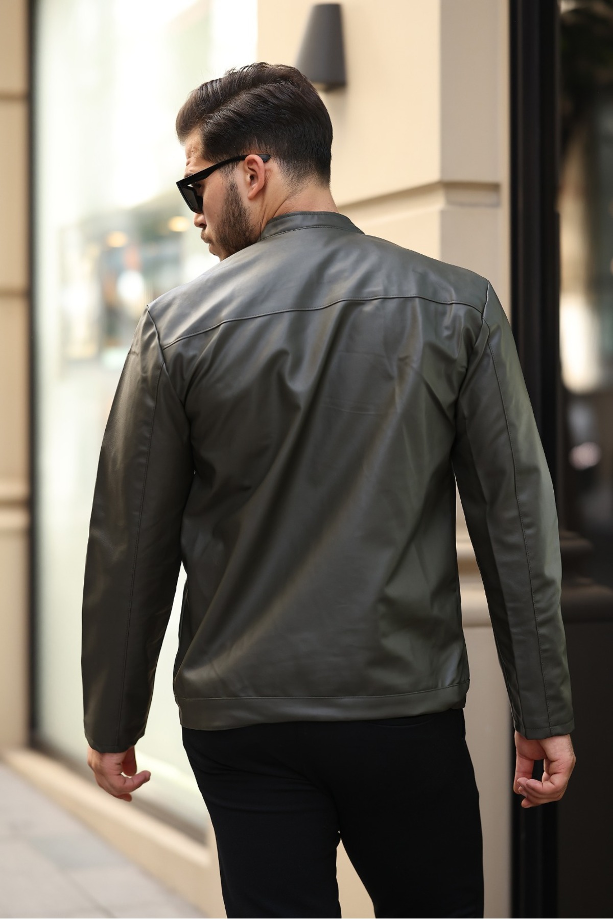 ژاکت چرمی مصنوعی اسلیم فیت خاکی