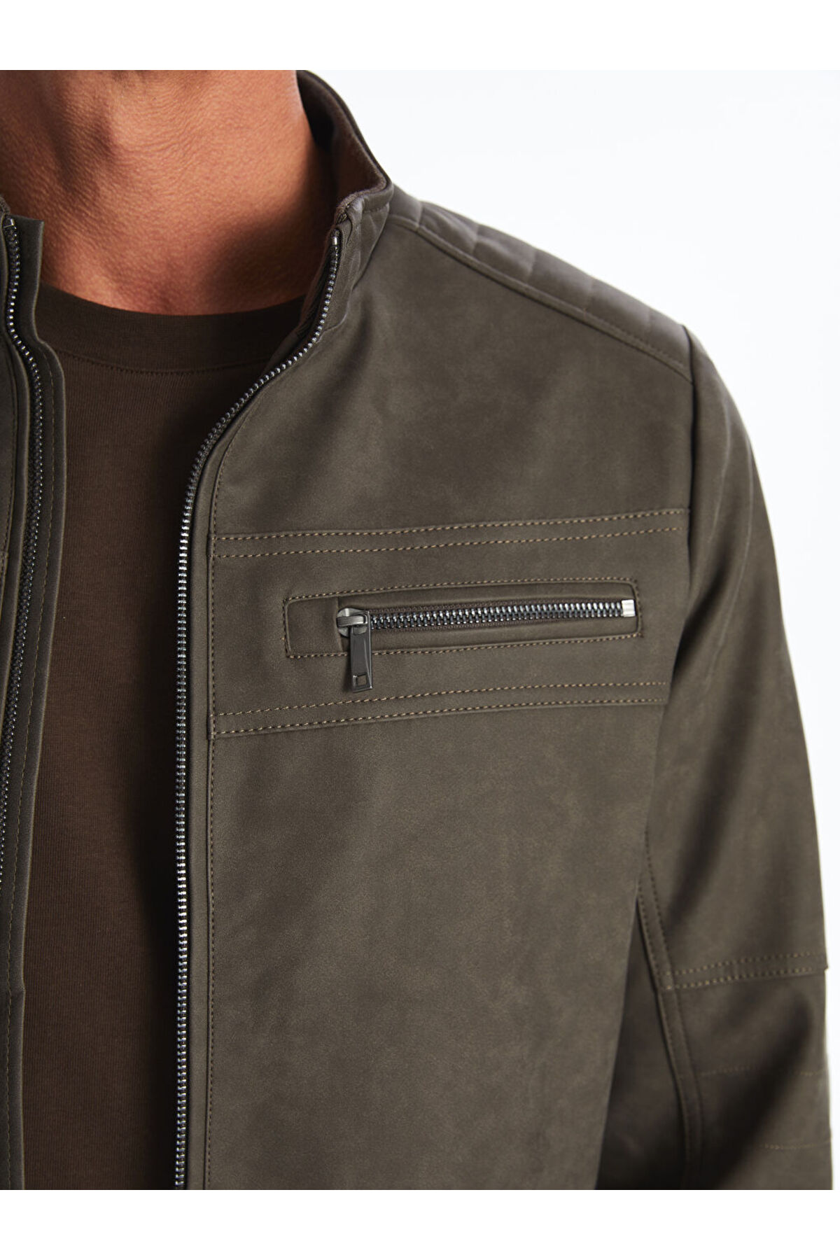 کاپشن چرمی مردانه یقه ایستاده استاندارد سایز فیت