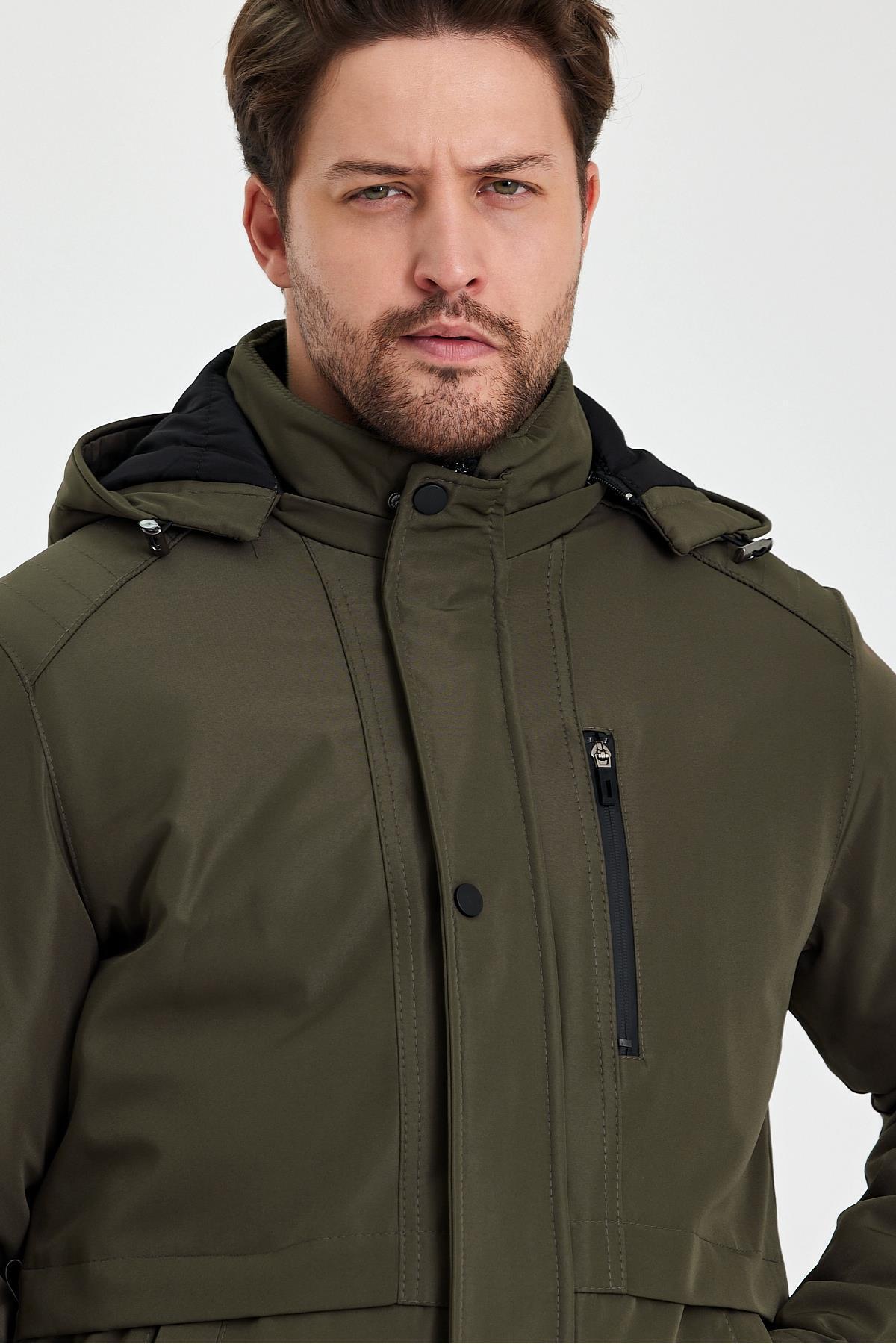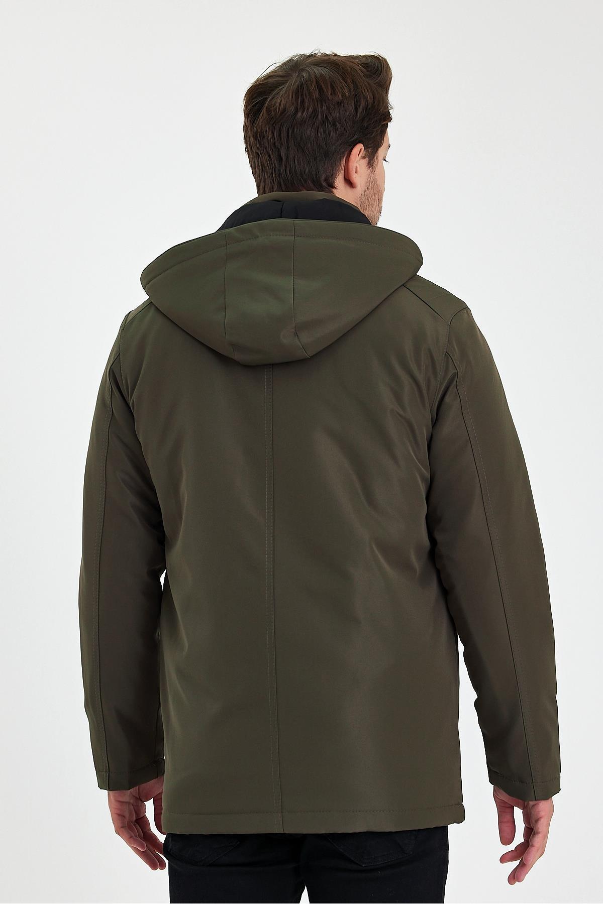 کاپشن/پالتو سبز، ضخیم، آستر خزدار، کلاهدار، قابل جدا شدن، ضد باد و ضد آب