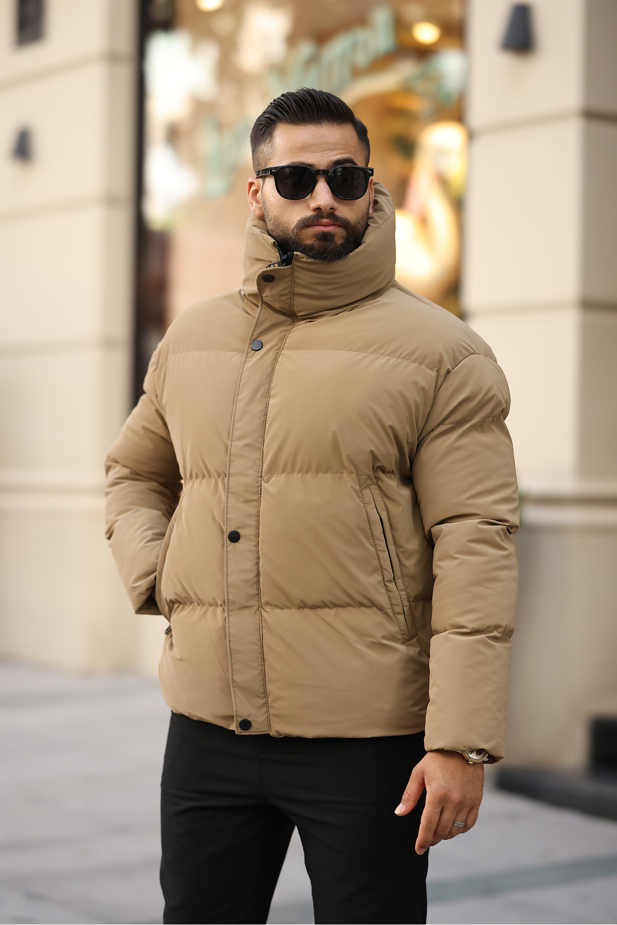 ژاکت یقه ایستاده قهوهای مردانه