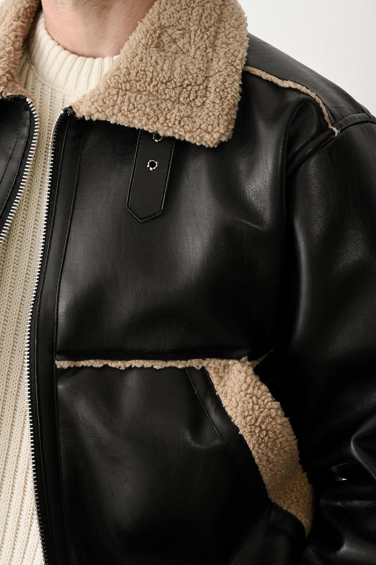 کاپشن مشکی آستین بلند چرم مصنوعی | | نمایندگی