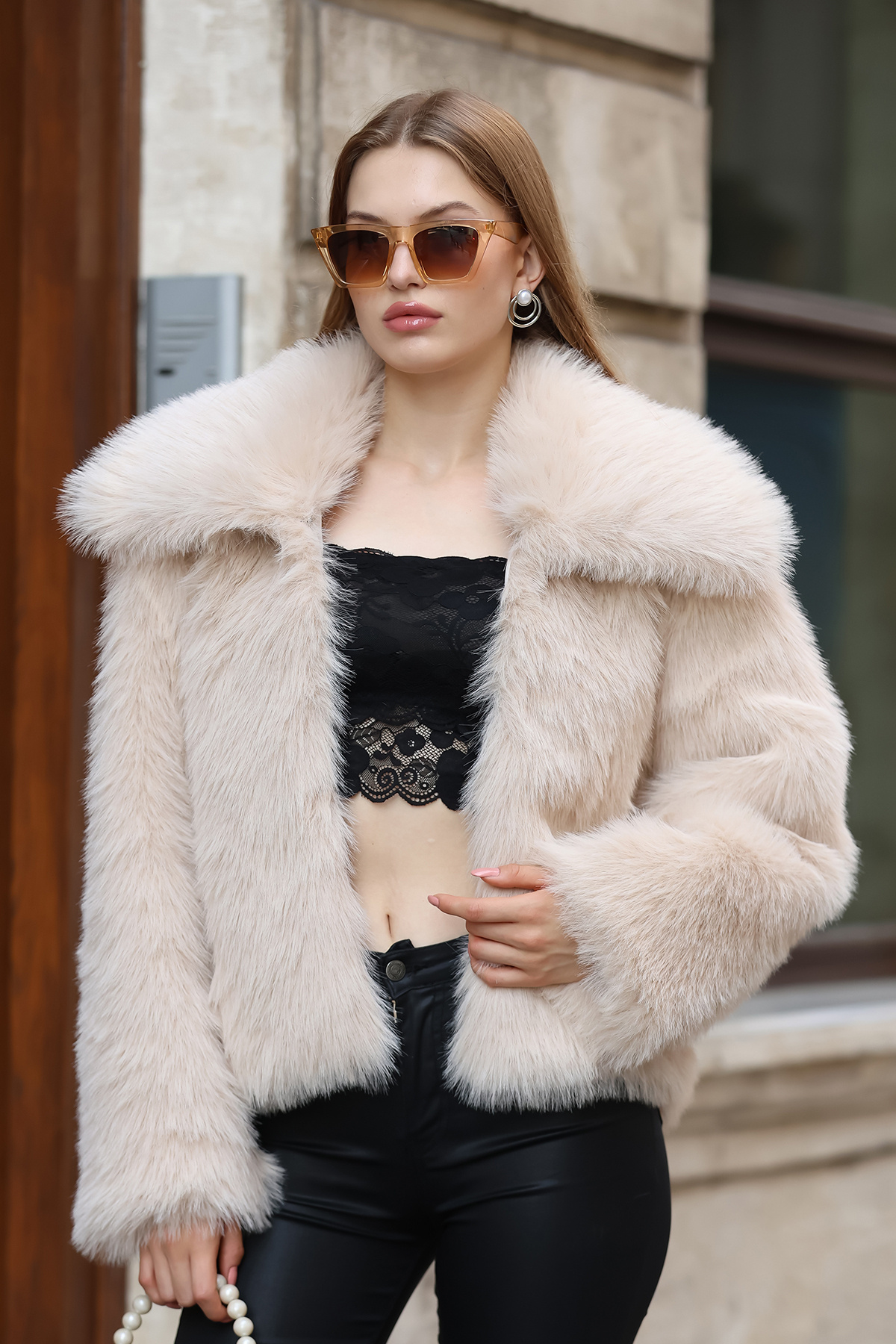 پالتو خزدار پریمیوم با بافت نرم و مخمل بژ سفارشی