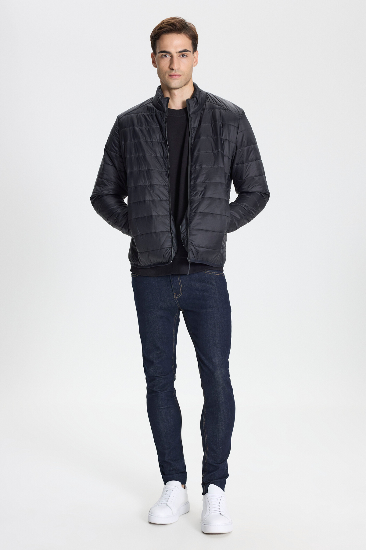 کاپشن پفی مردانه مشکی یقه ایستاده، ضد باد، گرم، فوق العاده سبک، فیت استاندارد