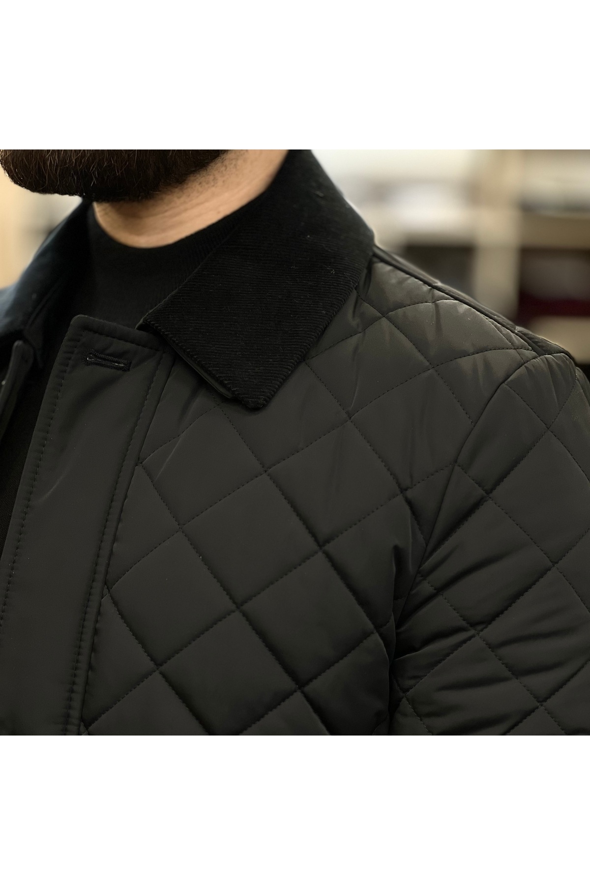 کاپشن/پالتو مردانه سایز معمولی، لحاف دوزی مشکی مدل A Quality (یقه جداشونده) طرح الماس
