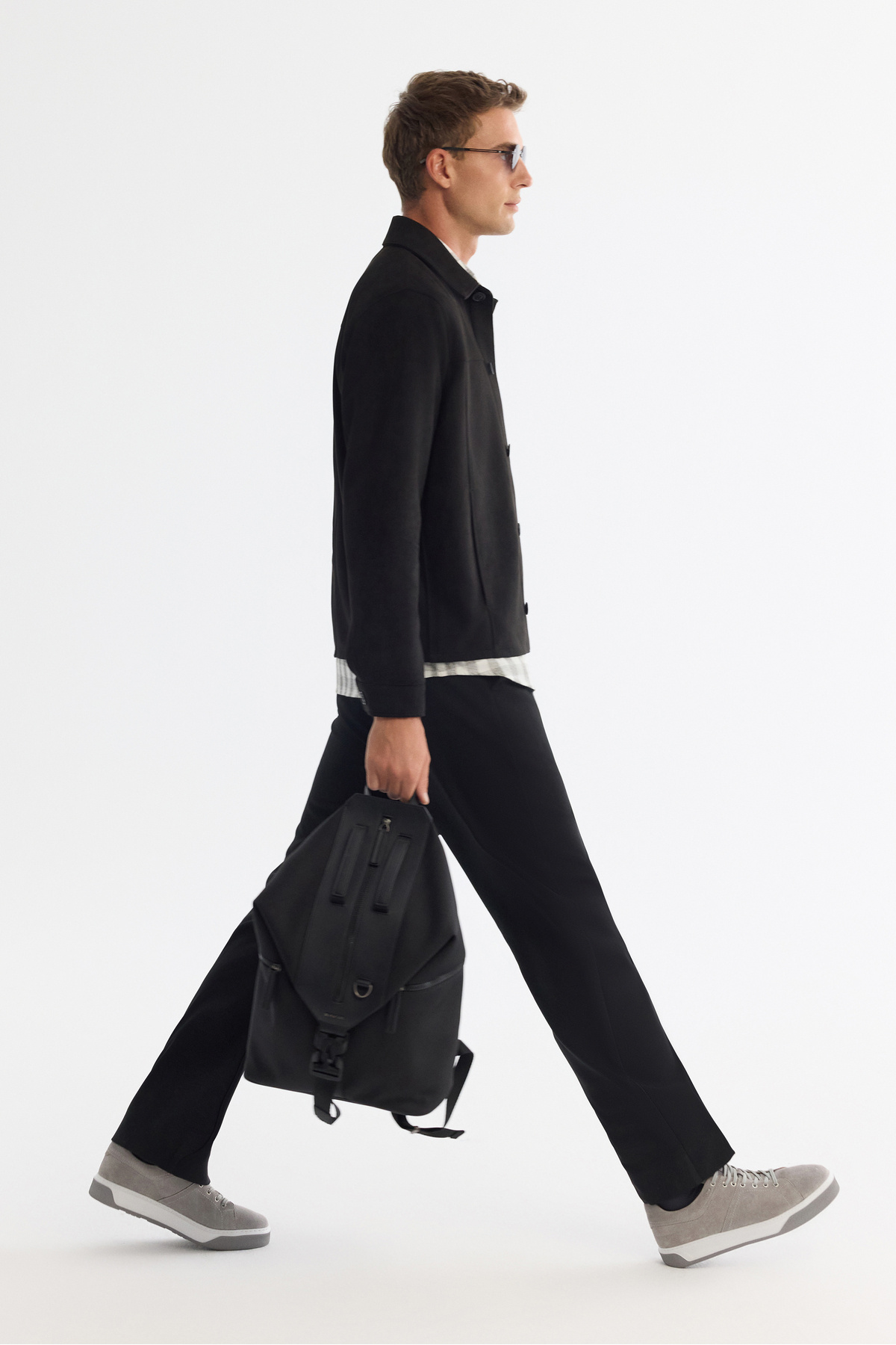 کاپشن راحتی مردانه یقه کلاسیک مشکی جیر بافتدار مناسب فصل A42Y6076