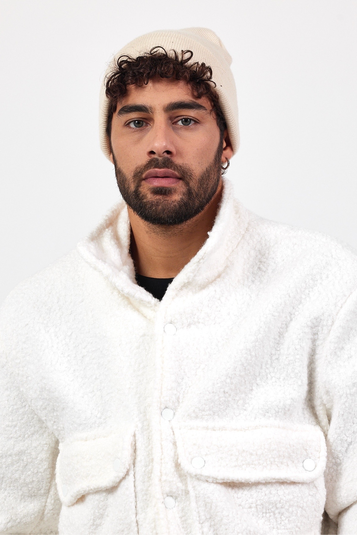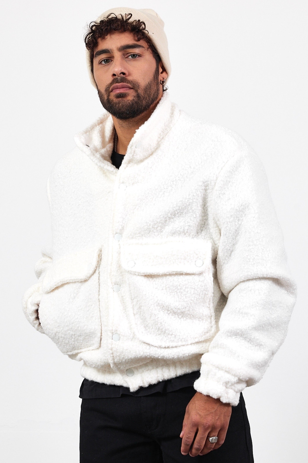 کاپشن مردانه دکمهدار سفید طرحدار مخصوص فصل جدید MZ51087