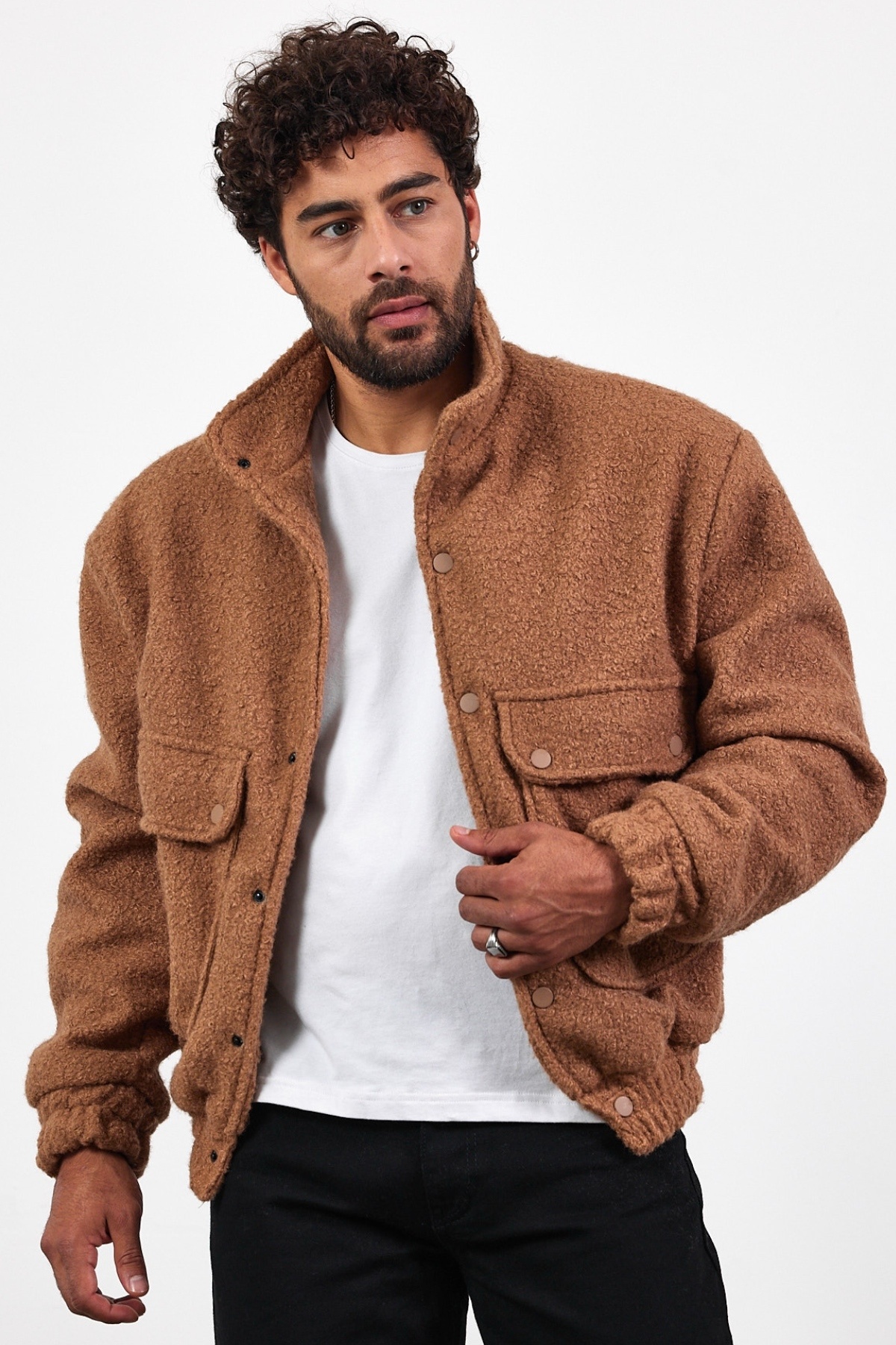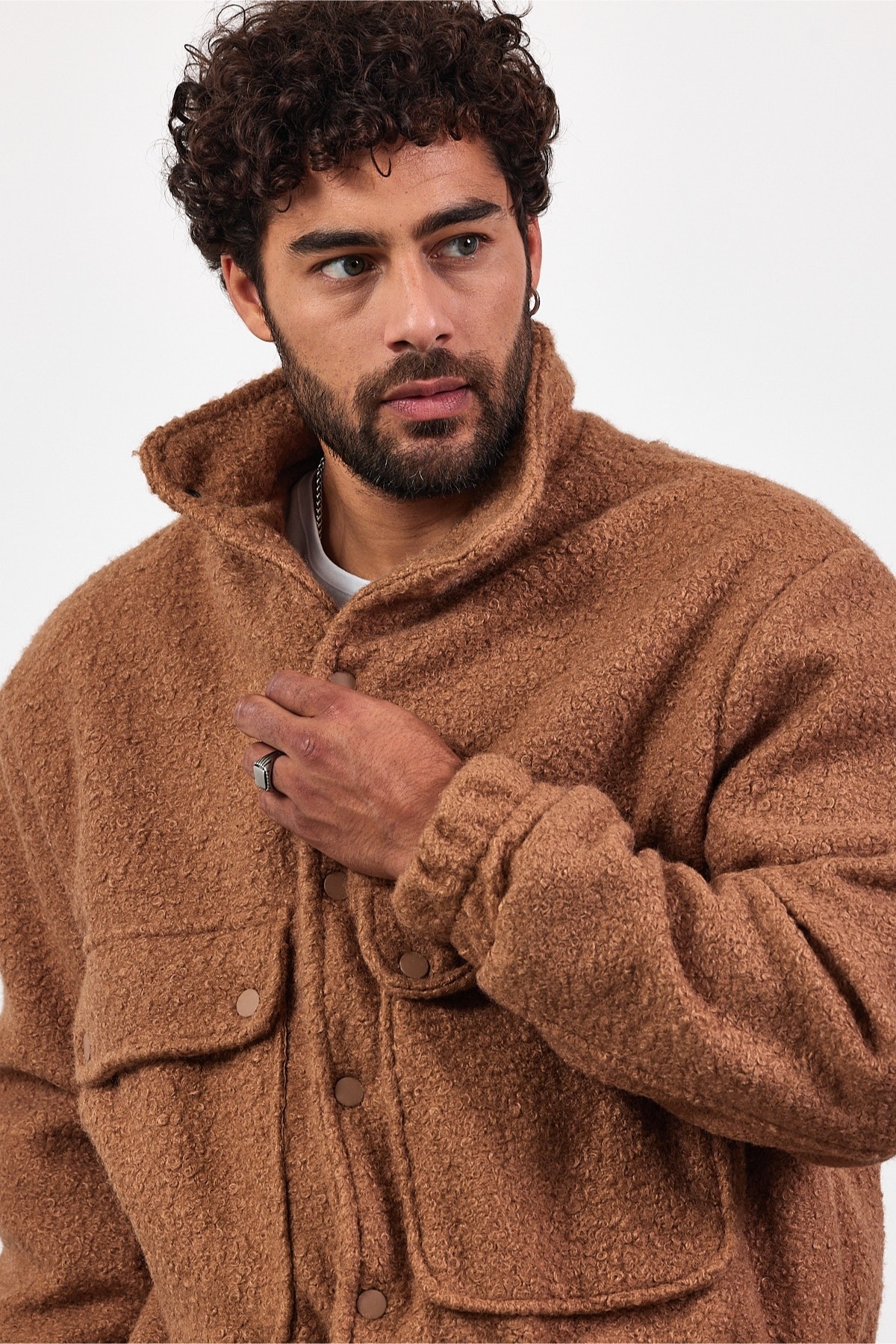ژاکت مردانه فصل جدید دکمه‌دار کشمیری طرح شتری MZ51087