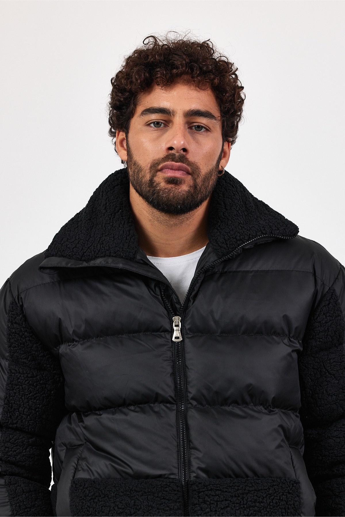 کاپشن پفی ضخیم مردانه مشکی با جزئیات مخمل و آستر MZ50638
