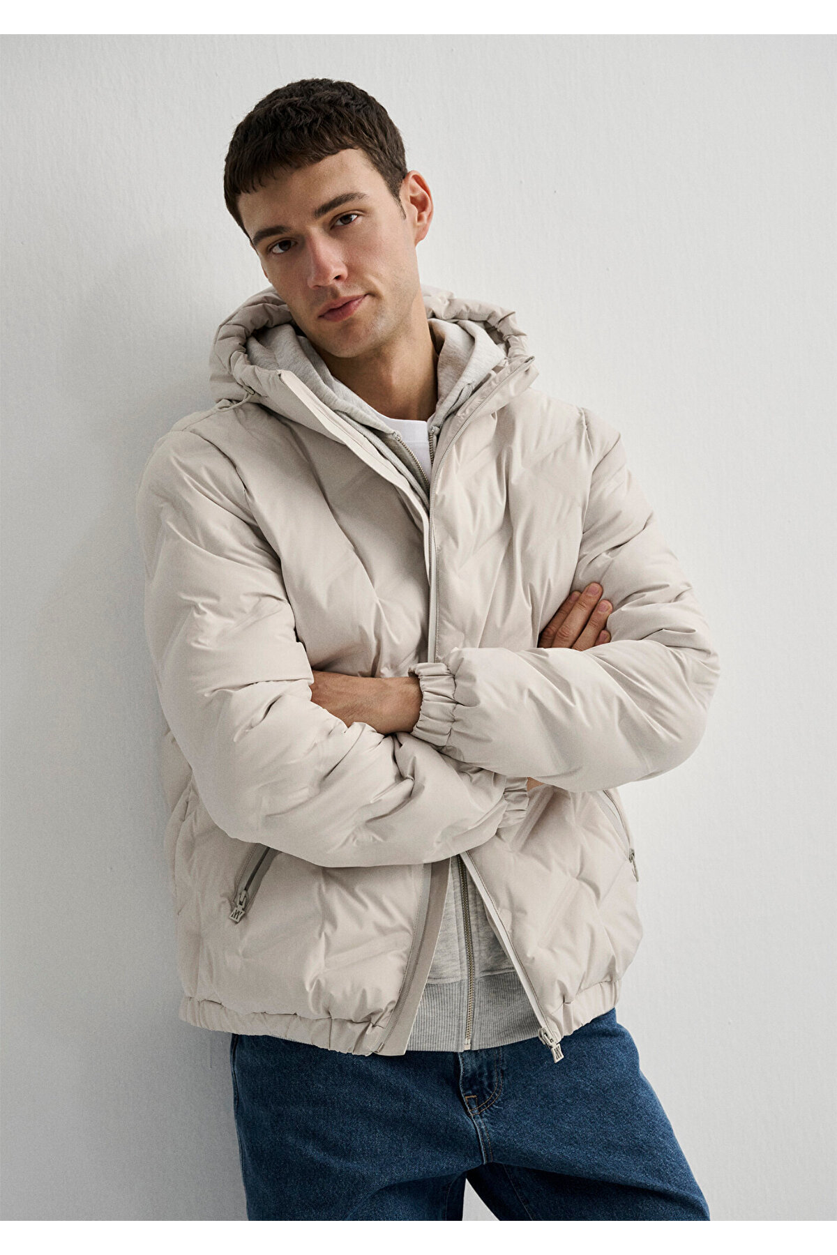 کاپشن کلاه‌دار بژ، سایز معمولی / برش معمولی 0110368-70144