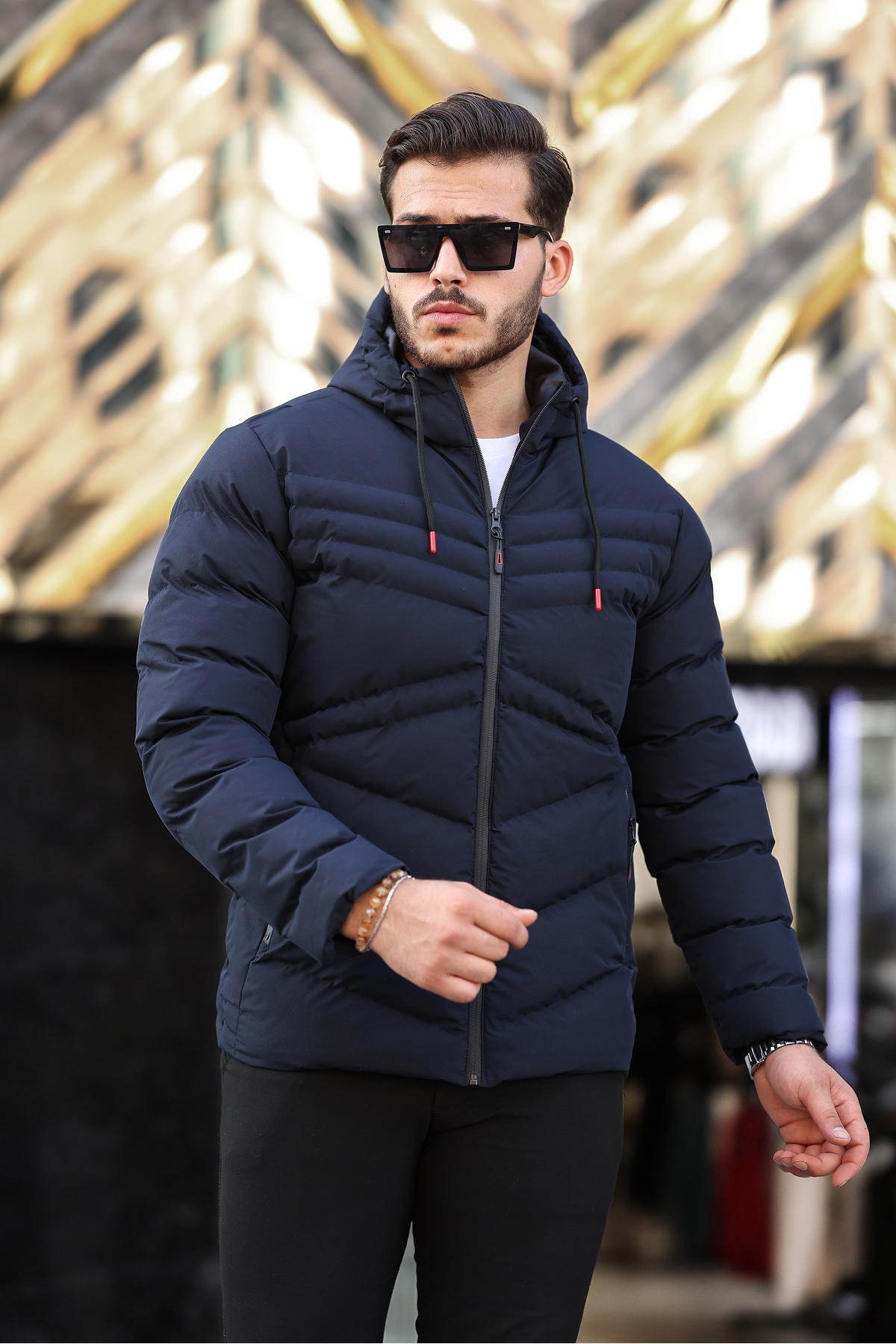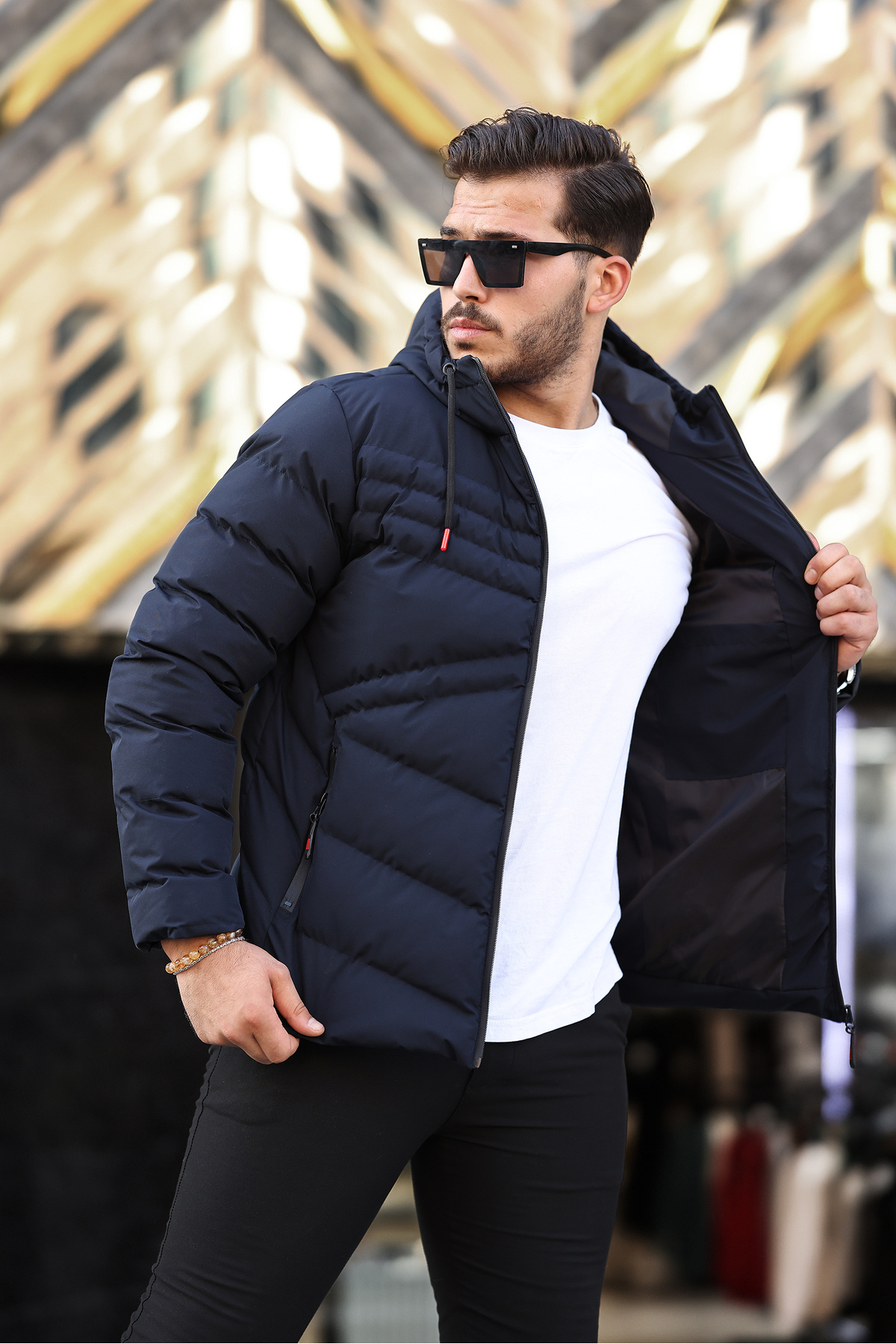 کاپشن زمستانی کلاهدار مردانه ضد آب و باد، کاپشن پفی
