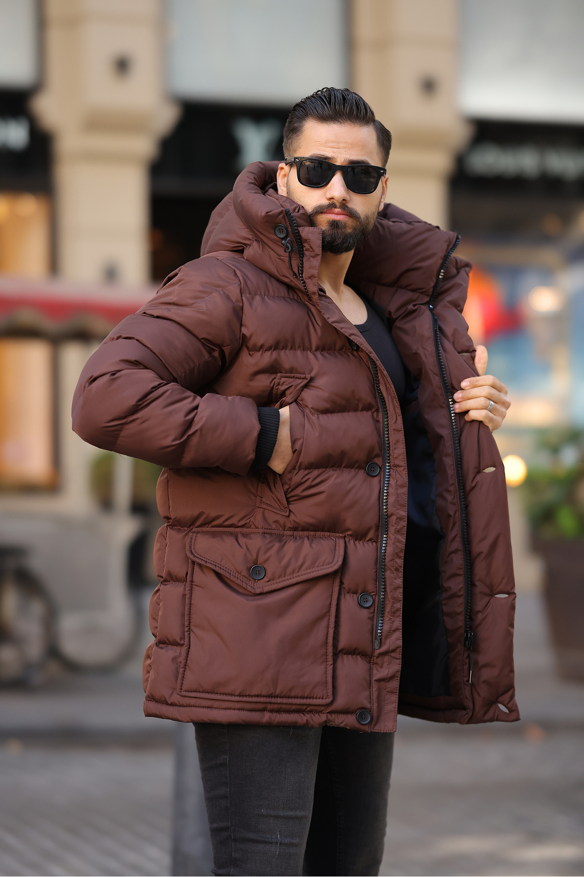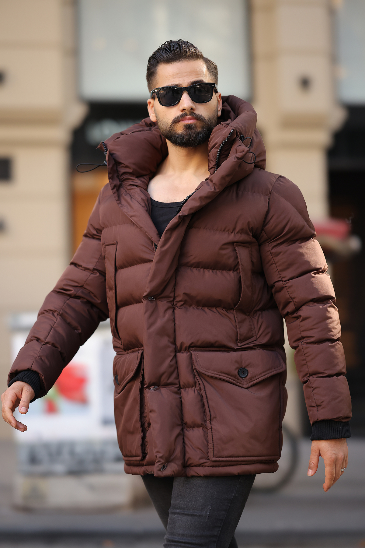 کت بلند زمستانی مردانه کلاه دار با جیب