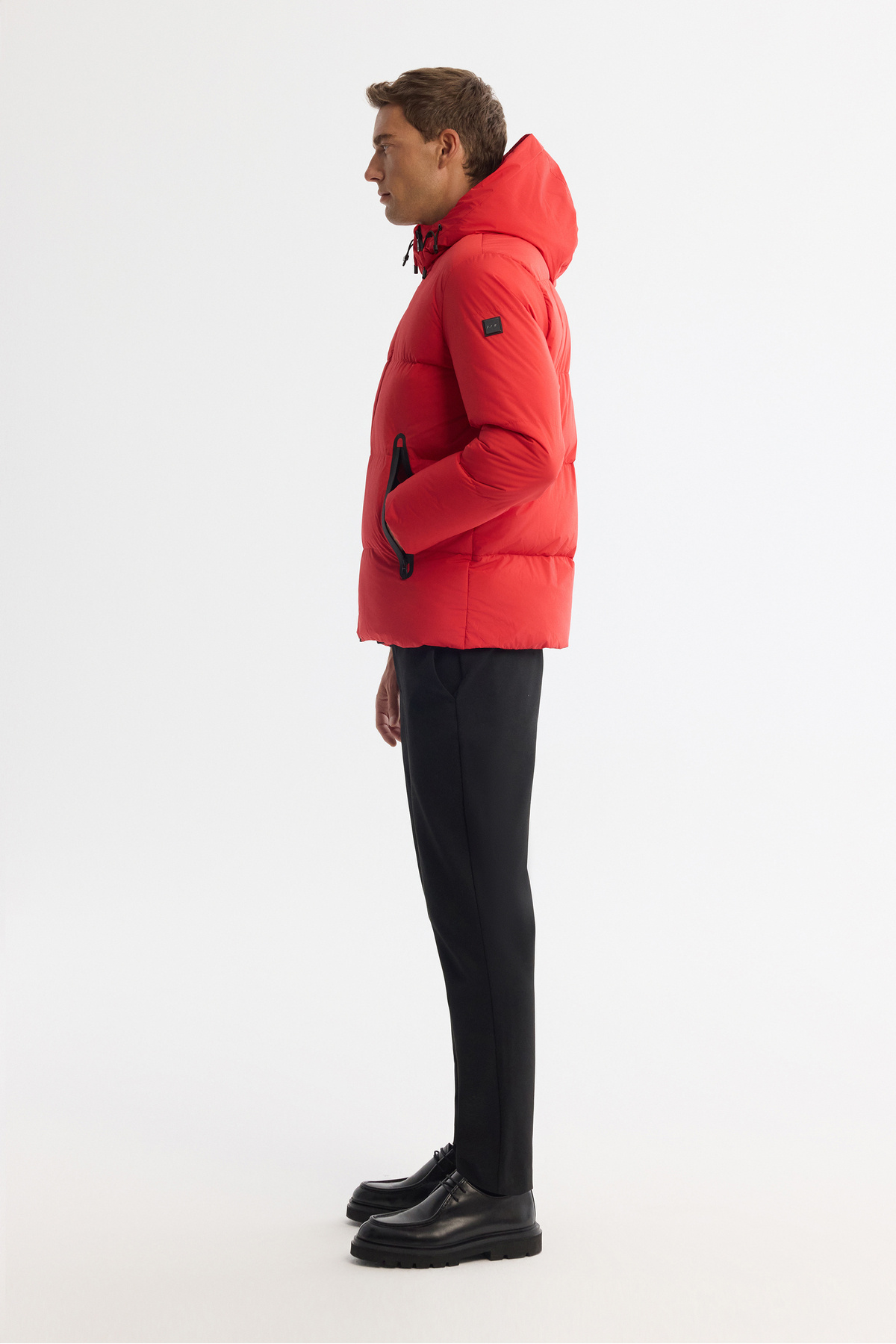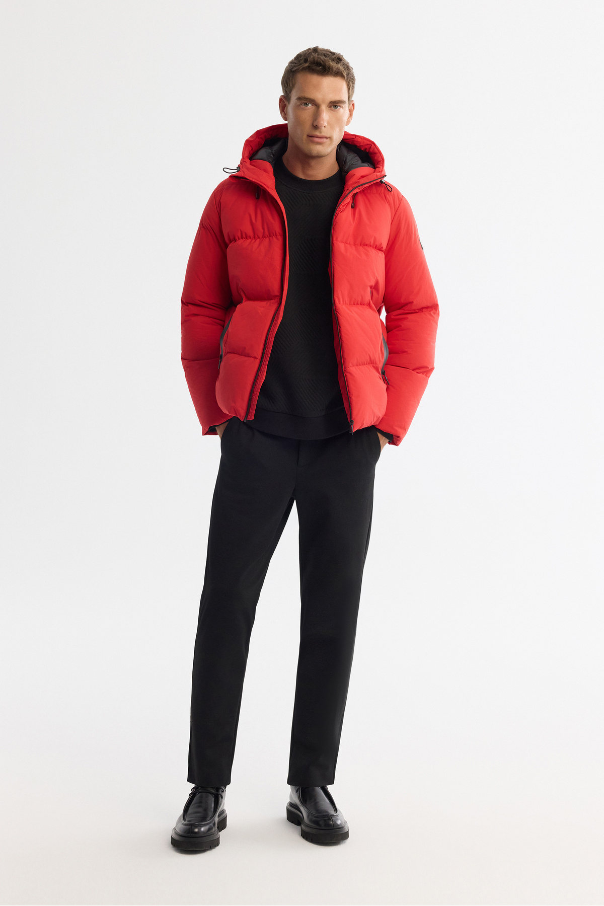 کاپشن مردانه کلاهدار قرمز، ضد آب، مقاوم در برابر باد تا دمای منفی ۵ درجه سانتیگراد، دارای پد، مناسب و راحت، مدل B006046